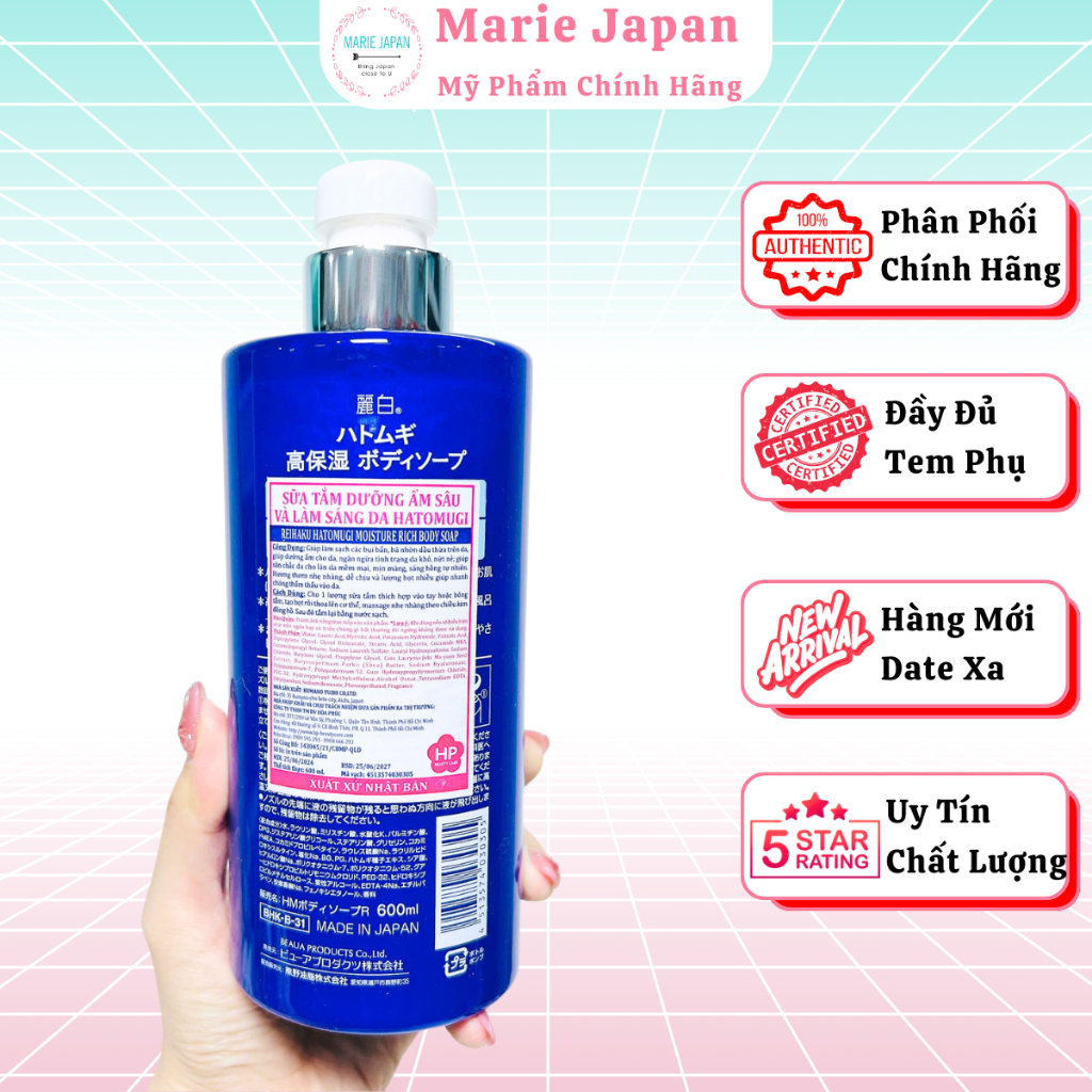 Sữa Tắm Hatomugi Cấp Ẩm Chuyên Sâu Trắng Da Chiết Xuất Ý Dĩ Nhật Bản - Chai 600ml