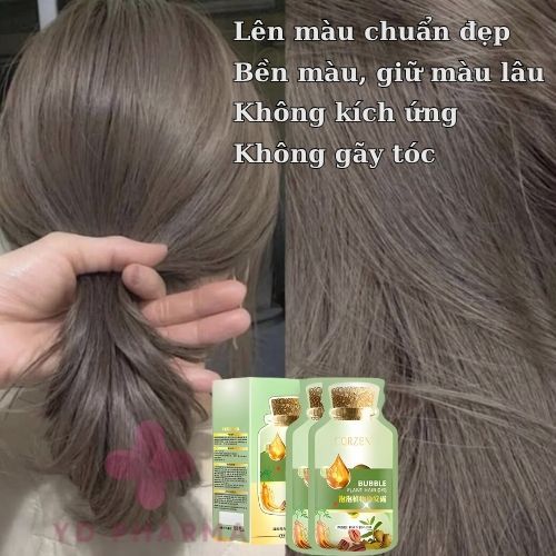 Dầu Gội Nhuộm Tóc Phủ Bạc Bubble Nhân Sâm Hàn Quốc Hộp 10 Gói, Lên Màu Chuẩn Salon, Ko Lem Rát Da Đầu Tóc Thơm Mềm Mượt