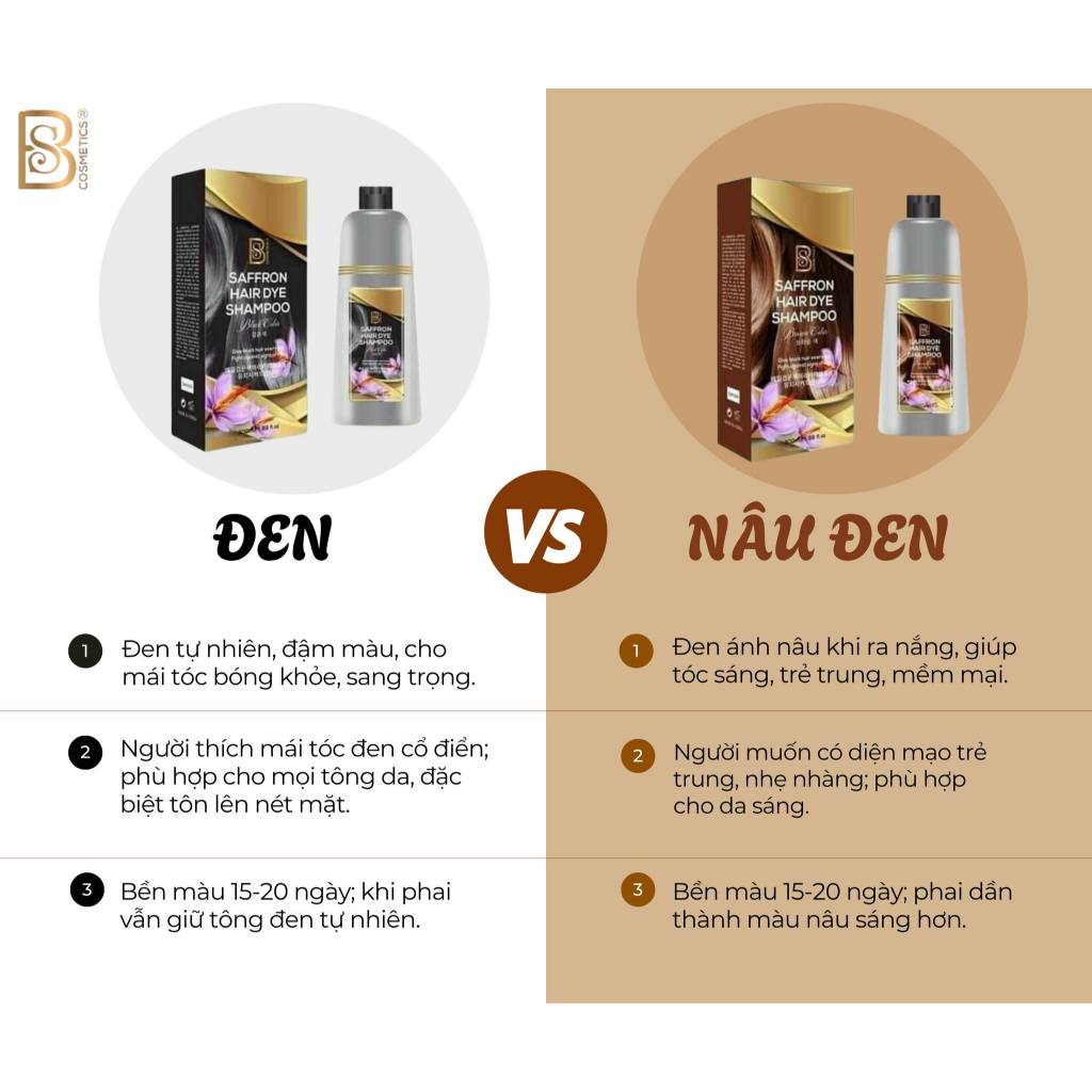 Dầu Gội Phủ Bạc Saffron Hàn Quốc – Màu Nâu - Đen Tự Nhiên – Thảo Mộc An Toàn BSCOSMETICS chai 500ml