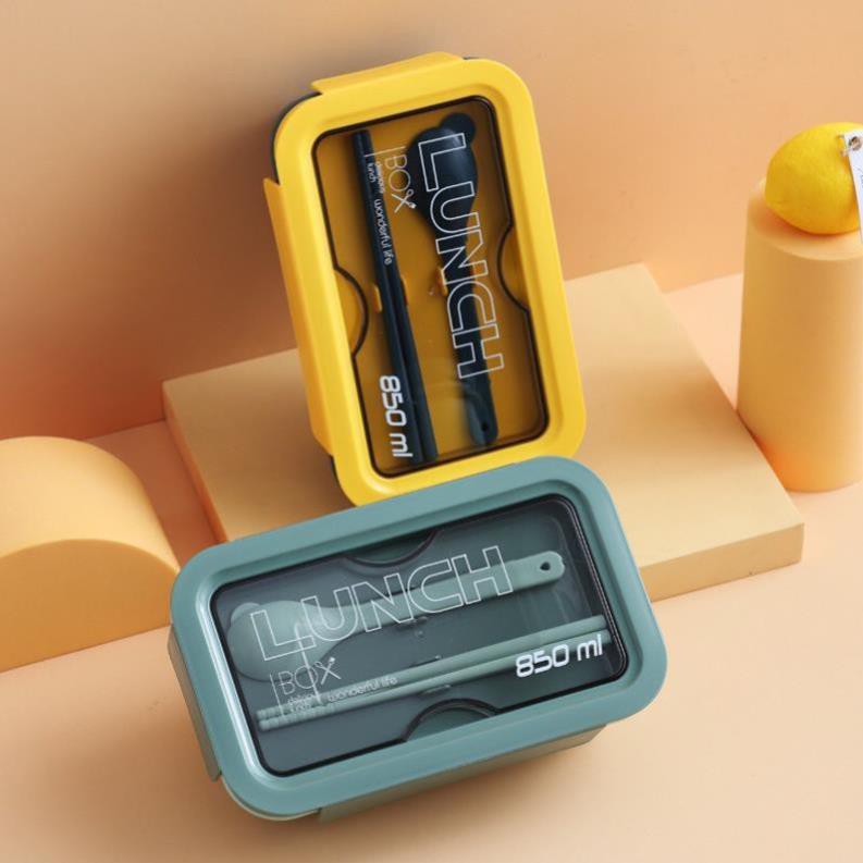Hộp cơm văn phòng giữ nhiệt Lunch Box 1100ml tặng kèm muỗng thìa cao cấp an toàn sức khỏe sử dụng được lò vi sóng