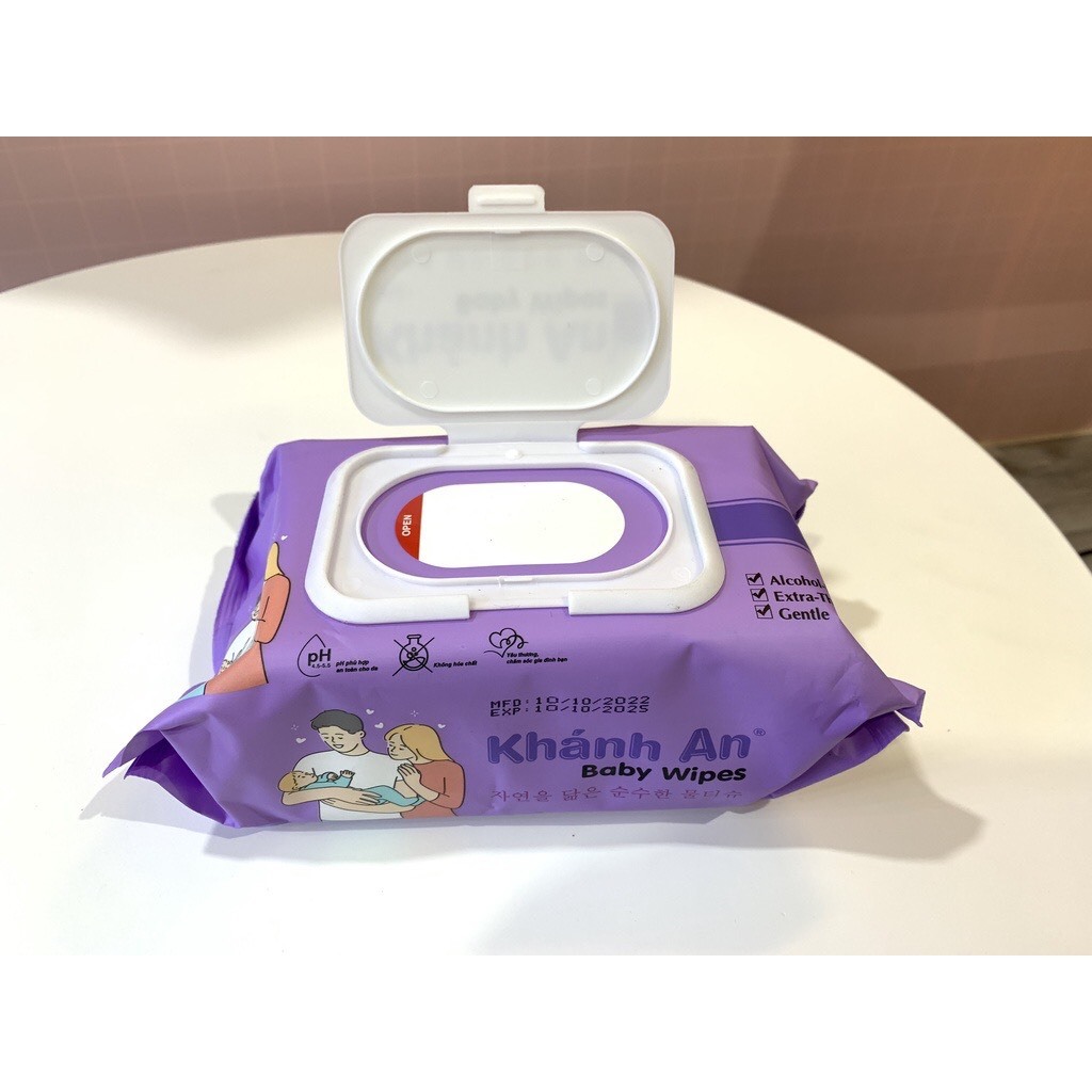 Thùng 10 bịch khăn ướt BABY WIPES Khánh An Tím 100 tờ an toàn cho bé