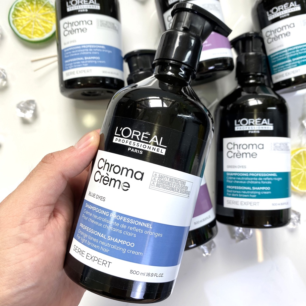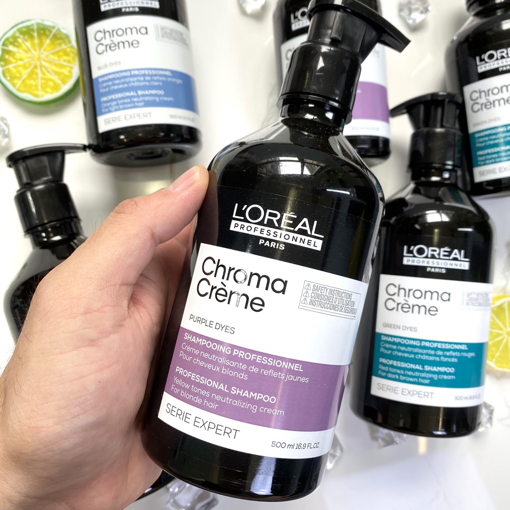 Dầu Gội Tím Khử Vàng, Xanh Dương Khử Cam, Xanh Lá Khử Đỏ Cực Mạnh Loreal Professionnel Chroma Crème
