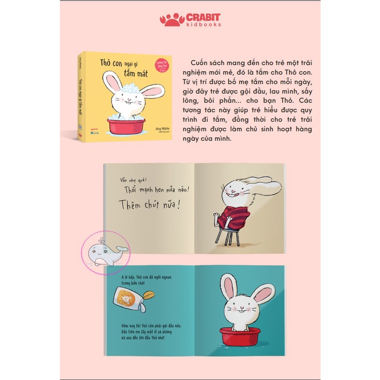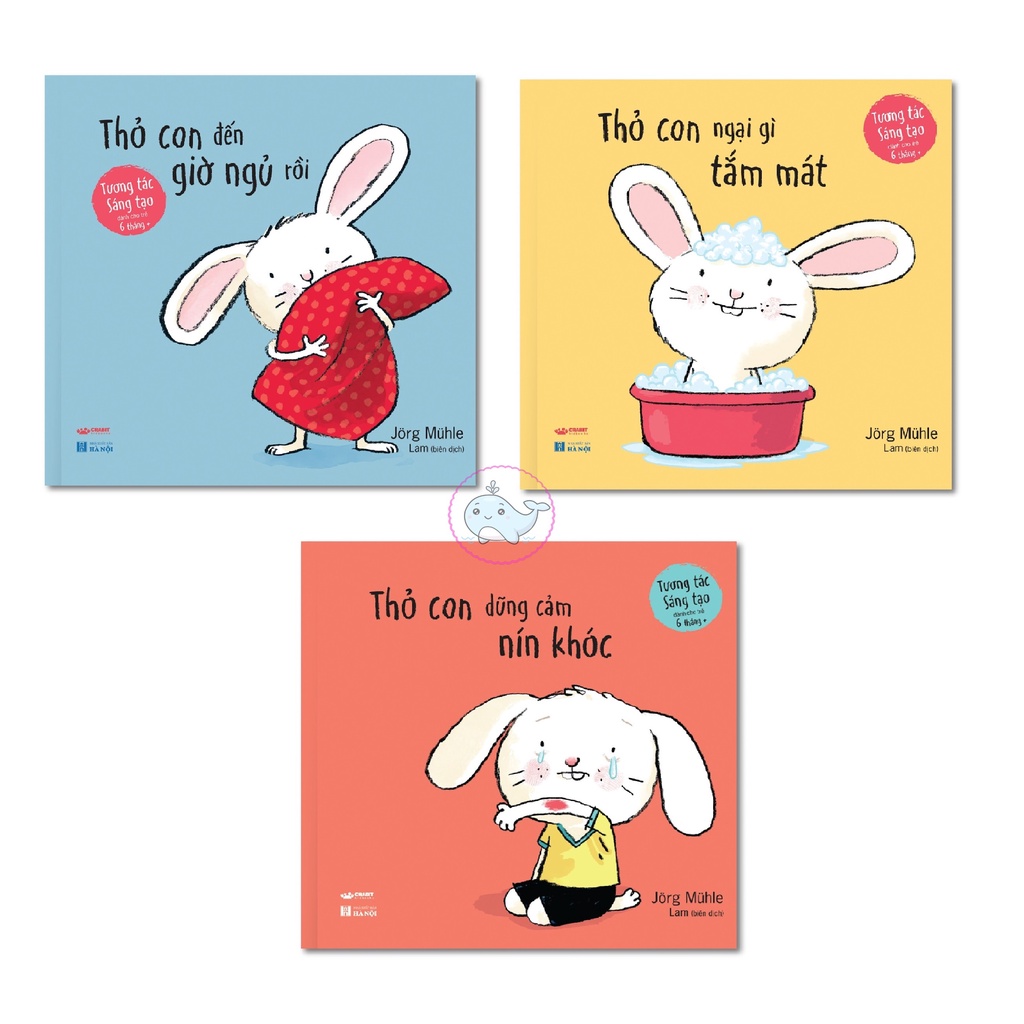 Sách - thỏ con tương tác sáng tạo: thỏ con ngại gì tắm mát / thỏ con đến giờ ngủ rồi / thỏ con dũng cảm nín khóc