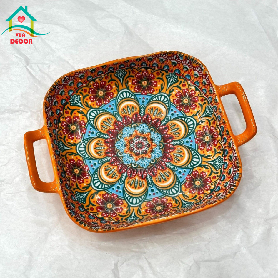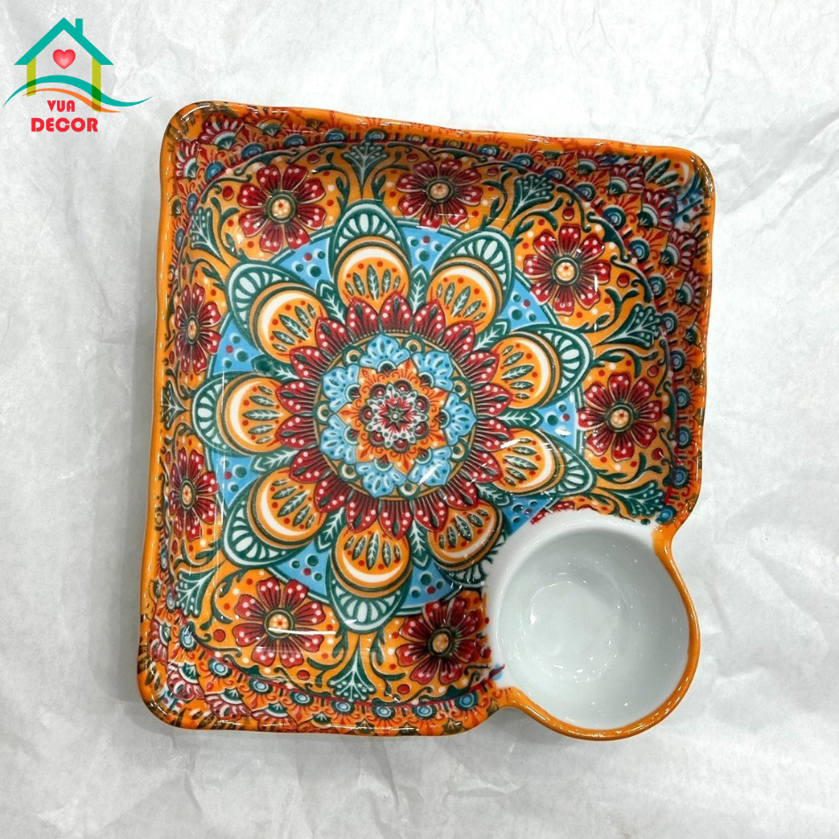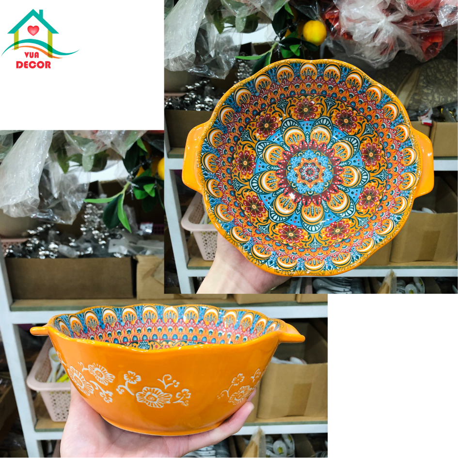 Bộ bát đĩa sứ Thổ Cẩm Cam-chén bát Decor-bộ bát ăn cơm dễ thương phủ men bóng màu cam,chén dĩa sứ VuaDecor