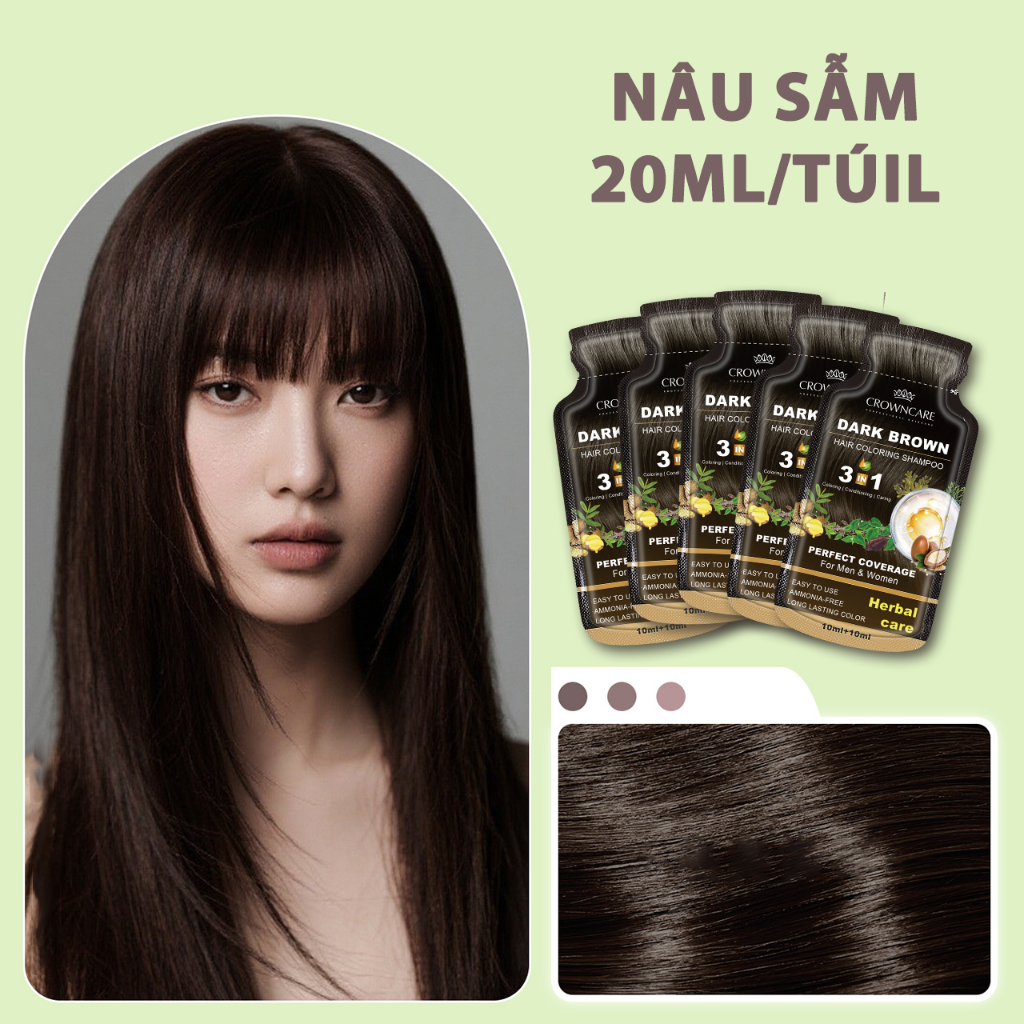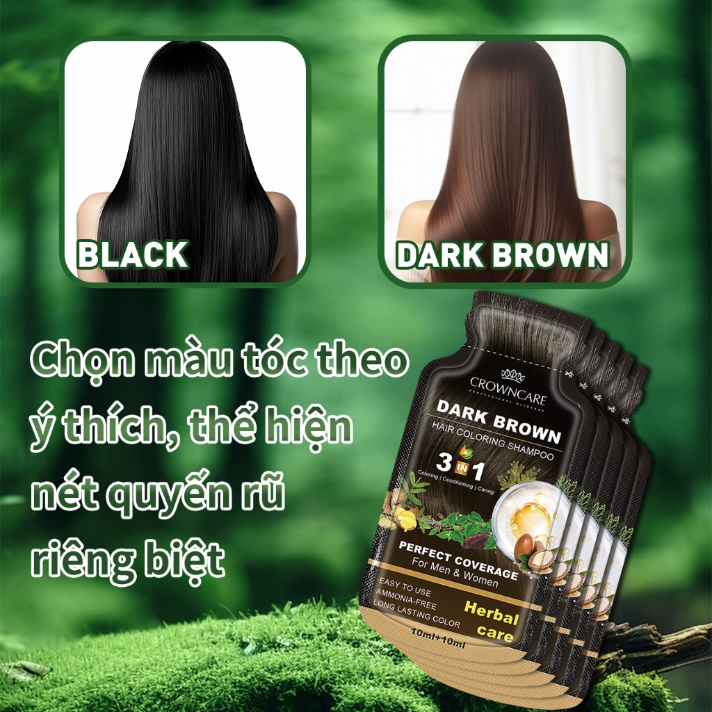 Dầu Gội Phủ Bạc Tạo Bọt, Công Thức Thảo Dược An Toàn, Không Cần Tẩy Trắng, Mở Túi Là Nhuộm, Màu Sắc Lâu Trôi, 20ml/túi