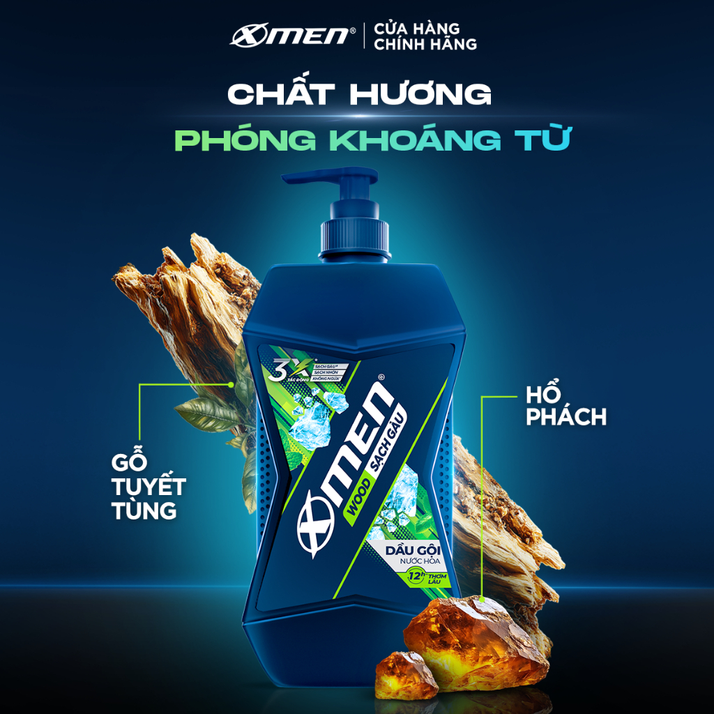 [MỚI RA MẮT] Dầu Gội Nam Xmen Wood Sạch Gàu 610g, Hương Gỗ & Bạc Hà Mát Lạnh