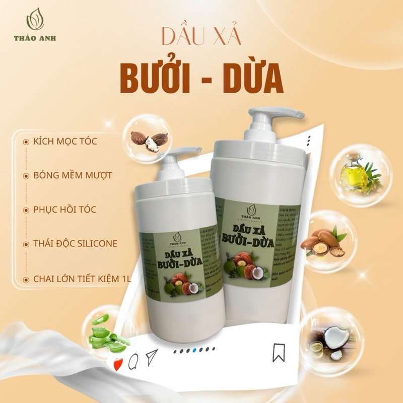 (1 lít / 500ml) DẦU Ủ/ XẢ TÓC BƯỞI DỪA NHA ĐAM - THẢO ANH
