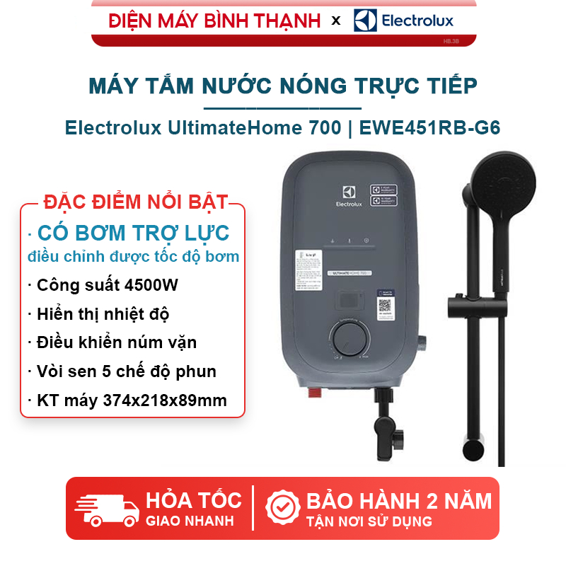 Máy nước nóng Electrolux UltimateHome 700 EWE451RB-G6 - 4500W, điều chỉnh tốc độ bơm - BH 2 năm