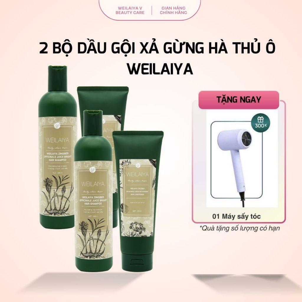 Bộ gội xả gừng hà thủ ô Weilaiya giảm rụng, kích mọc tóc chính hãng, dầu gội mượt tóc
