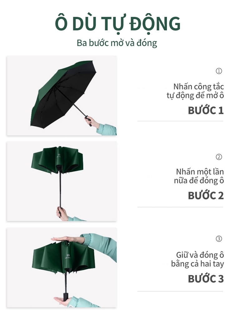 ICON Ô dù che mưa nắng cầm tay tự động 2 chiều đóng mở,Ô dù che nắng mini UPF50+