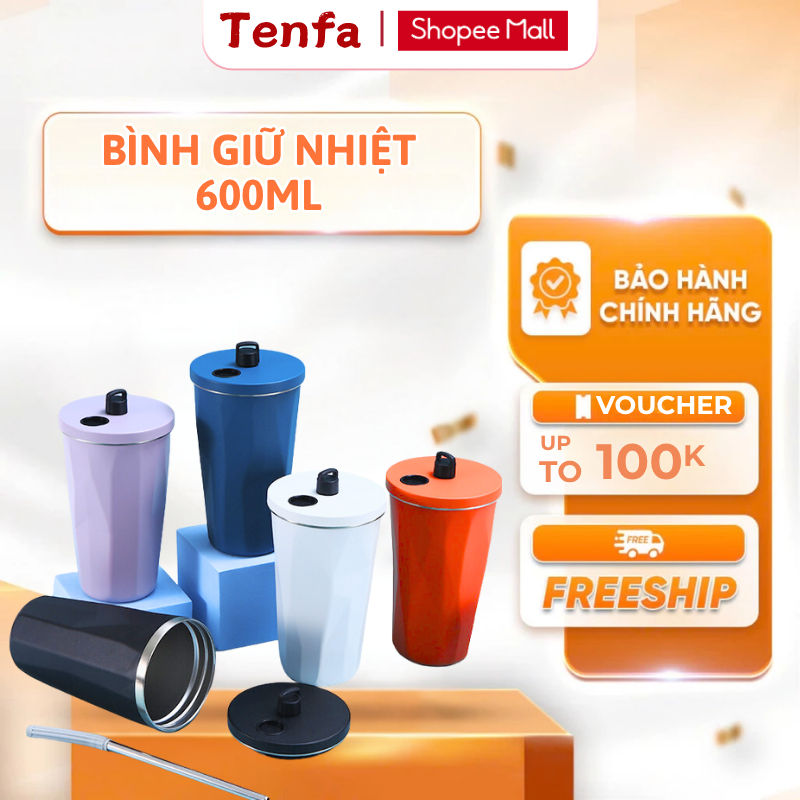 [XẢ HÀNG] Ly giữ nhiệt chất liệu inox 304 cao cấp, an toàn, dung tích 600ml kèm ống hút