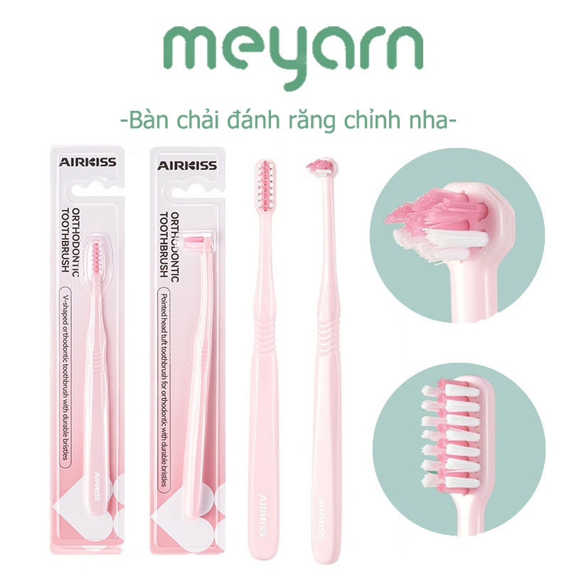 AIRKISS Set 2 Bàn chải đánh răng chỉnh nha + bàn chải kẽ răng cụm đơn, thích hợp cho niềng răng