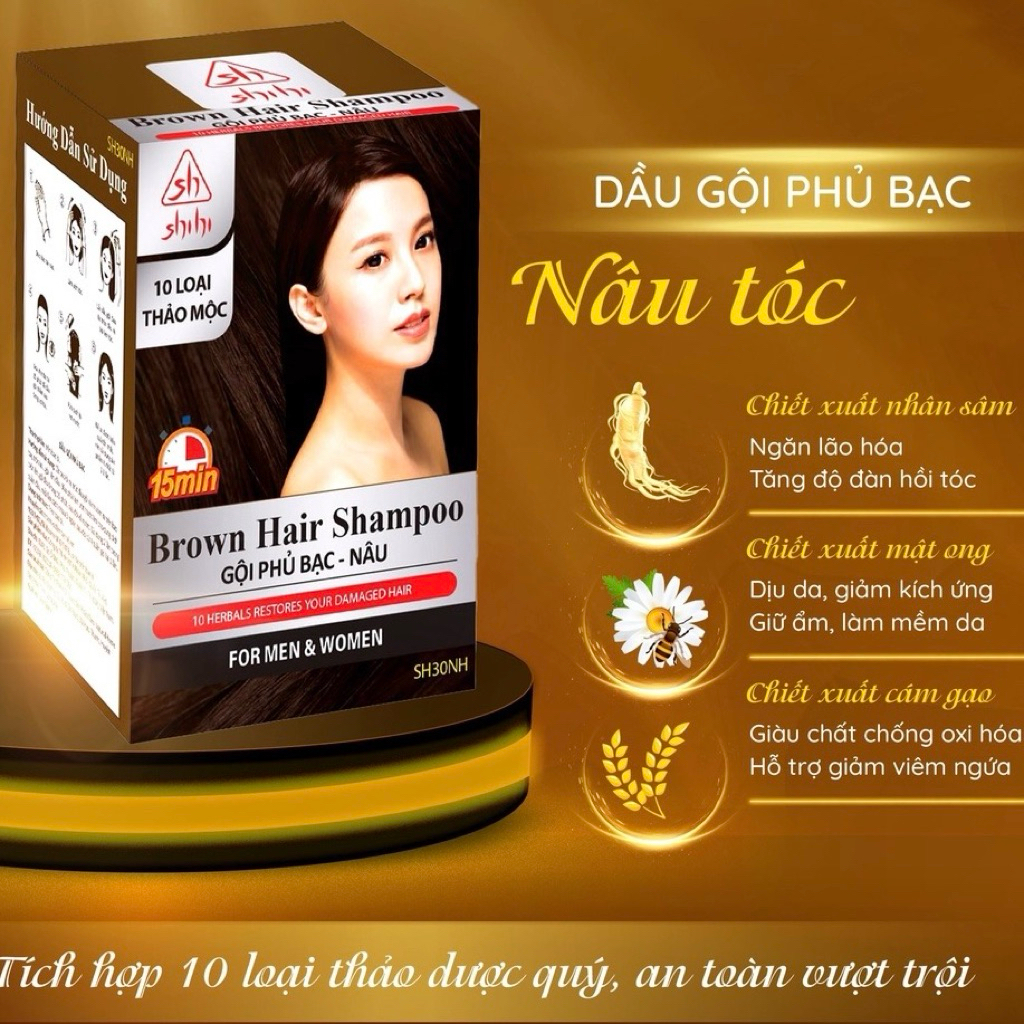 (Hộp 10 gói) Dầu gội Đen tóc tự nhiên bằng thảo dược nhập khẩu Hàn Quốc