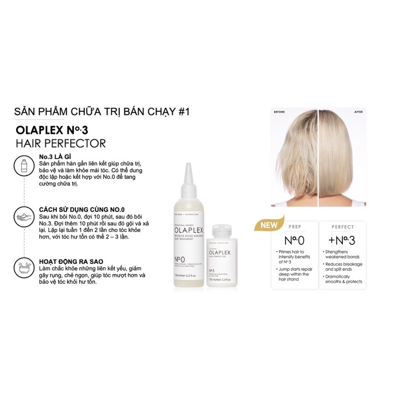 Dưỡng tóc phục hồi chuyên sâu Olaplex Mini Intense Hair Repair Kit No 3 No 0
