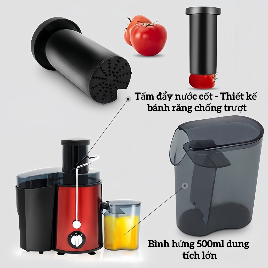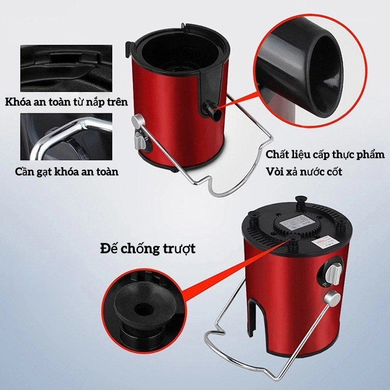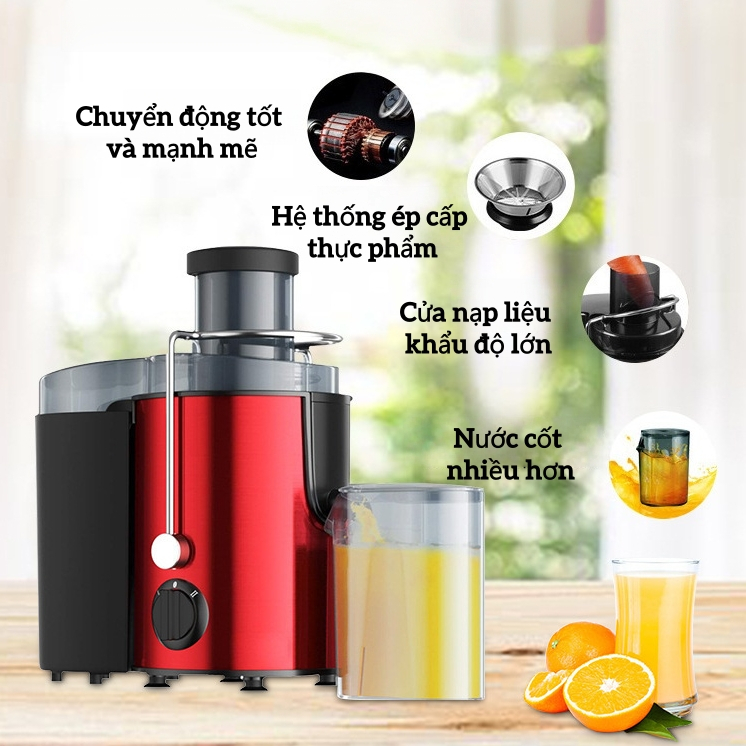 【Nước Ép Nguyên Chất】Máy Ép Trái Cây Tách Bã Công Suất Lớn - Động Cơ Đồng, Lưới Dao Inox 0.45mm, Ly Dung Tích Lớn