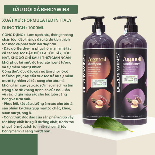 Dầu Gội Xả Berdywins Argan Oil 1000ml Dưỡng Ẩm Phục Hồi Tái Tạo Tóc, Giữ Màu Tóc Nhuộm Siêu Mềm Mượt