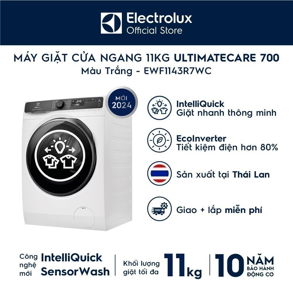 Free giao lắp - Máy giặt cửa ngang Electrolux 11kg UltimateCare 700 - Trắng EWF1143R7WC