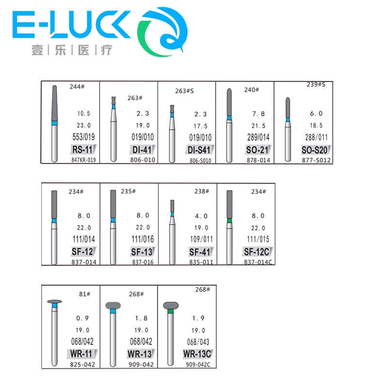 Hộp 10 Đầu Mũi Kim Cương RS/DI/SF/WR Cho Nha Khoa