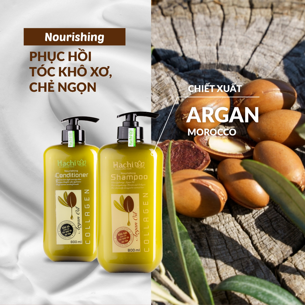 Dầu gội đầu ARGAN Hachi dành cho tóc hư tổn khô sơ - Cặp dầu gội xả Phục Hồi Tóc Khô Và Hử Tổn ARGAN