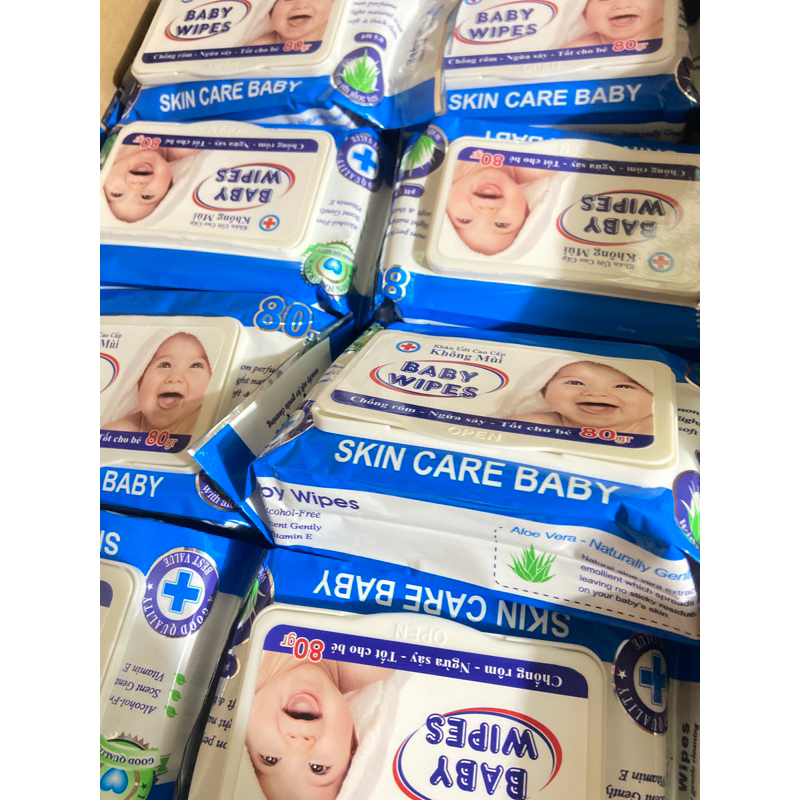 [Combo 10 gói] Khăn ướt Baby wipes 80gr không mùi vải bi dày, không xù lông