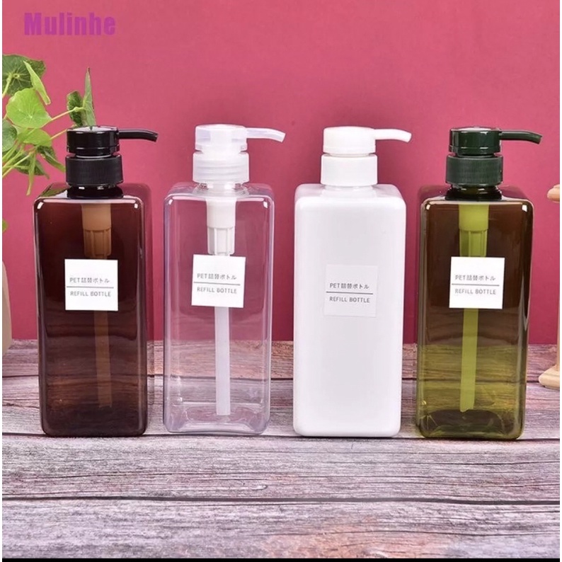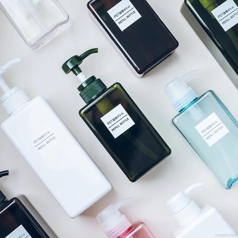 Chai vòi nhấn đựng dầu gội, sữa tắm bằng nhựa (vai vuông, dung tích 100ml/250ml/450ml)