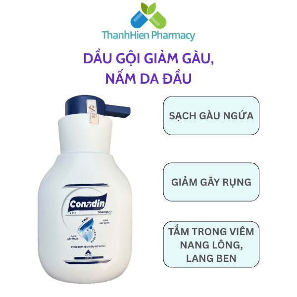 Dầu gội sạch gàu, nấm da đầu CONADIN - Chai 285 ml - Sạch gàu ngứa, giảm gãy rụng