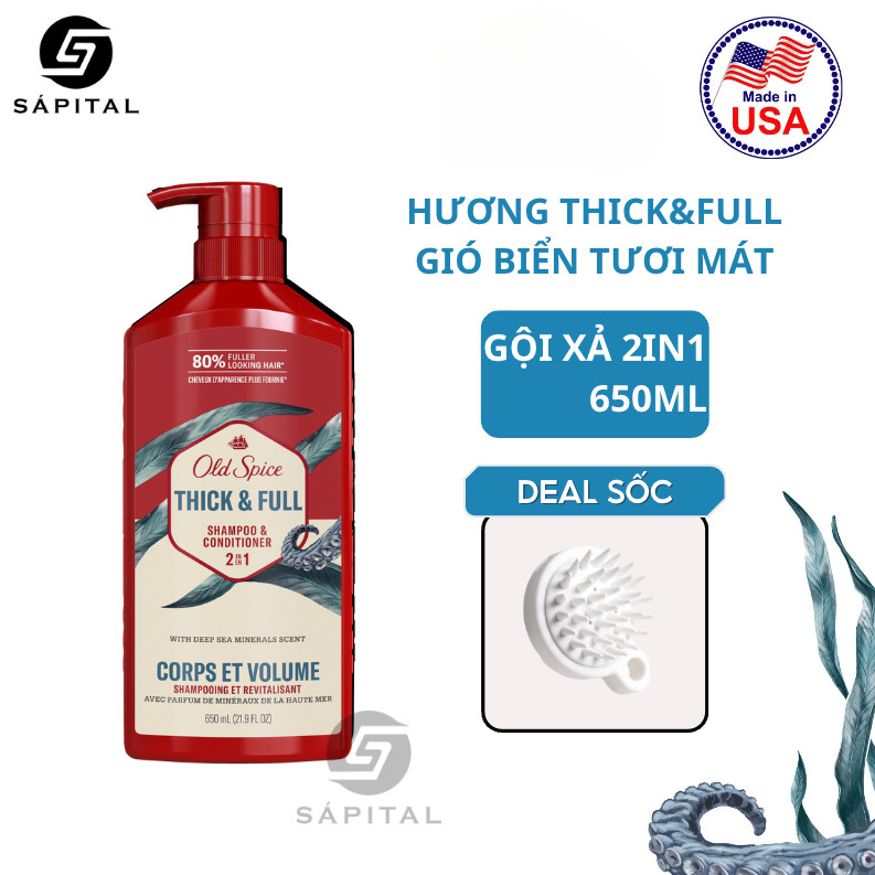 Dầu gội xả OLD SPICE 2IN1 THICK&FULL - BEARGLOVE - PURE SPORT Chính hãng Mỹ