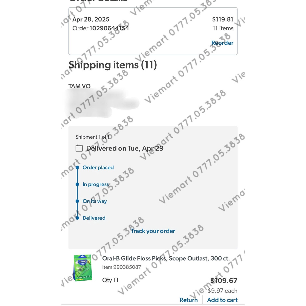 [Hàng Air] Tăm chỉ nha khoa Oral-B Glide 300 cây