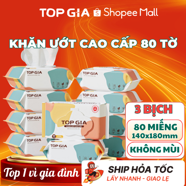 Khăn ướt rút cao cấp Top Gia 80 tờ dày dặn mềm mại không mùi không parabens dùng được cho em bé