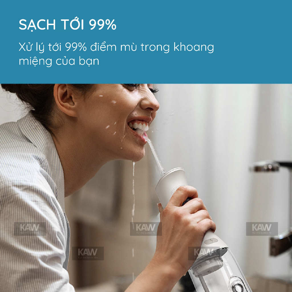 Tăm Nước KAW 386J – Máy Tăm Nước Vệ Sinh Răng Miệng Cao Cấp, Dùng Cho Người Niềng Răng, Pin 60 Ngày