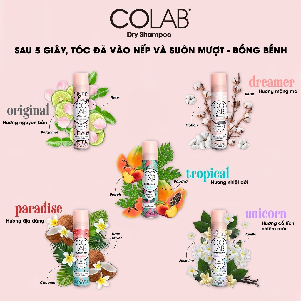Dầu gội khô Colab 200ml, phiên bản mới, full mùi hương, tóc sạch bồng bềnh vào nếp sau 5 giây