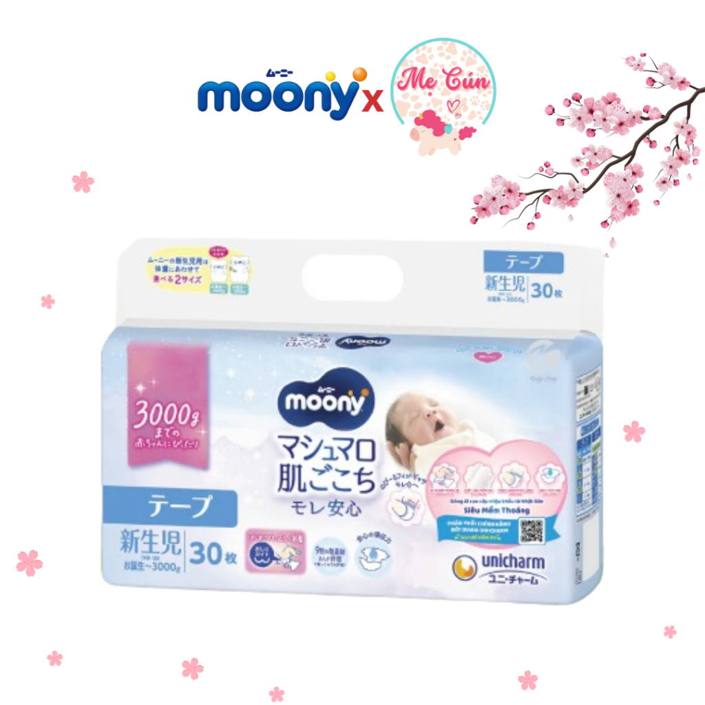 Tã dán Moony cao cấp 3S Dành cho bé sinh non dưới 3kg, bịch gồm 30 miếng