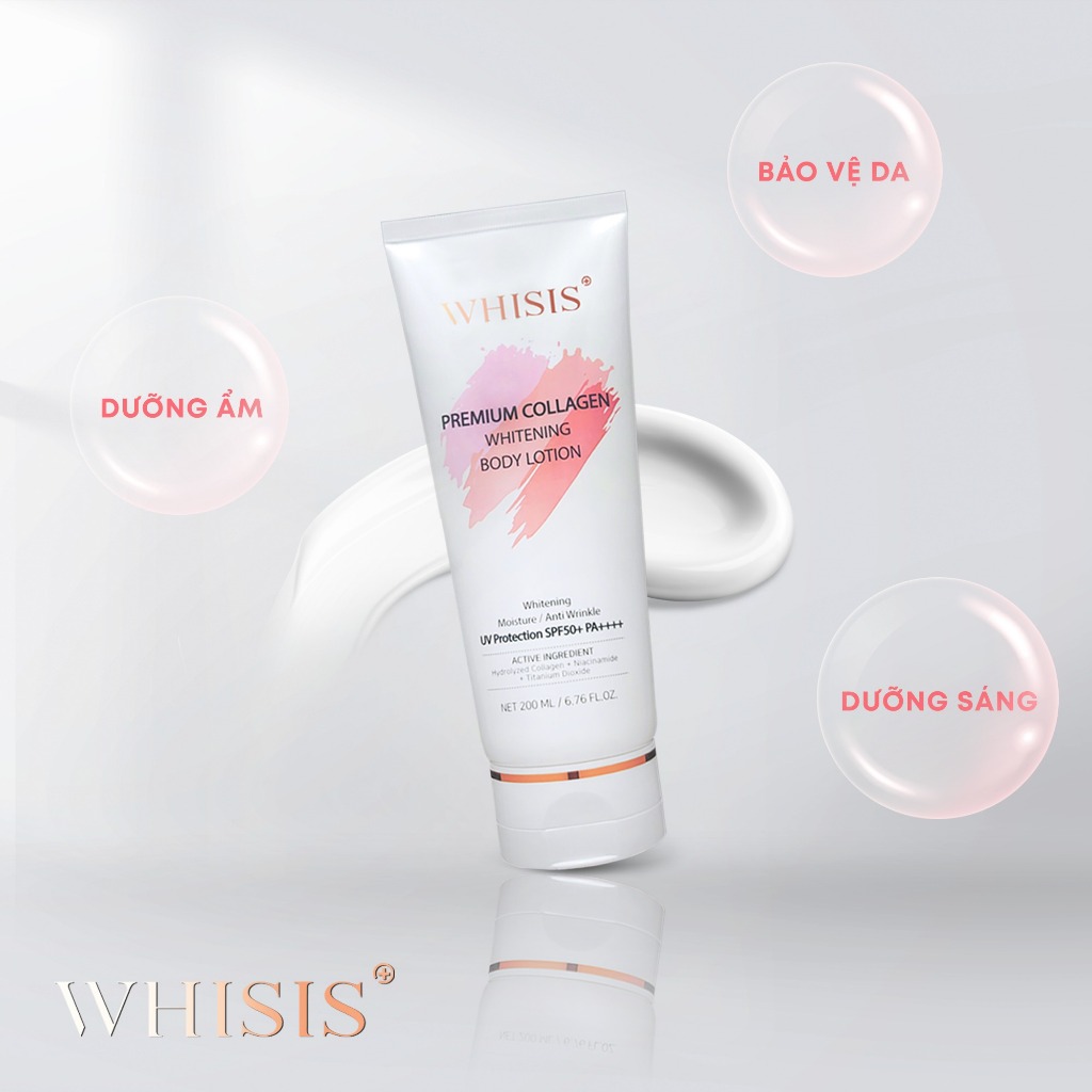 Kem dưỡng thể Whisis Premium Collagen Whitening Body Lotion 200ml dưỡng trắng da chống nắng ban ngày