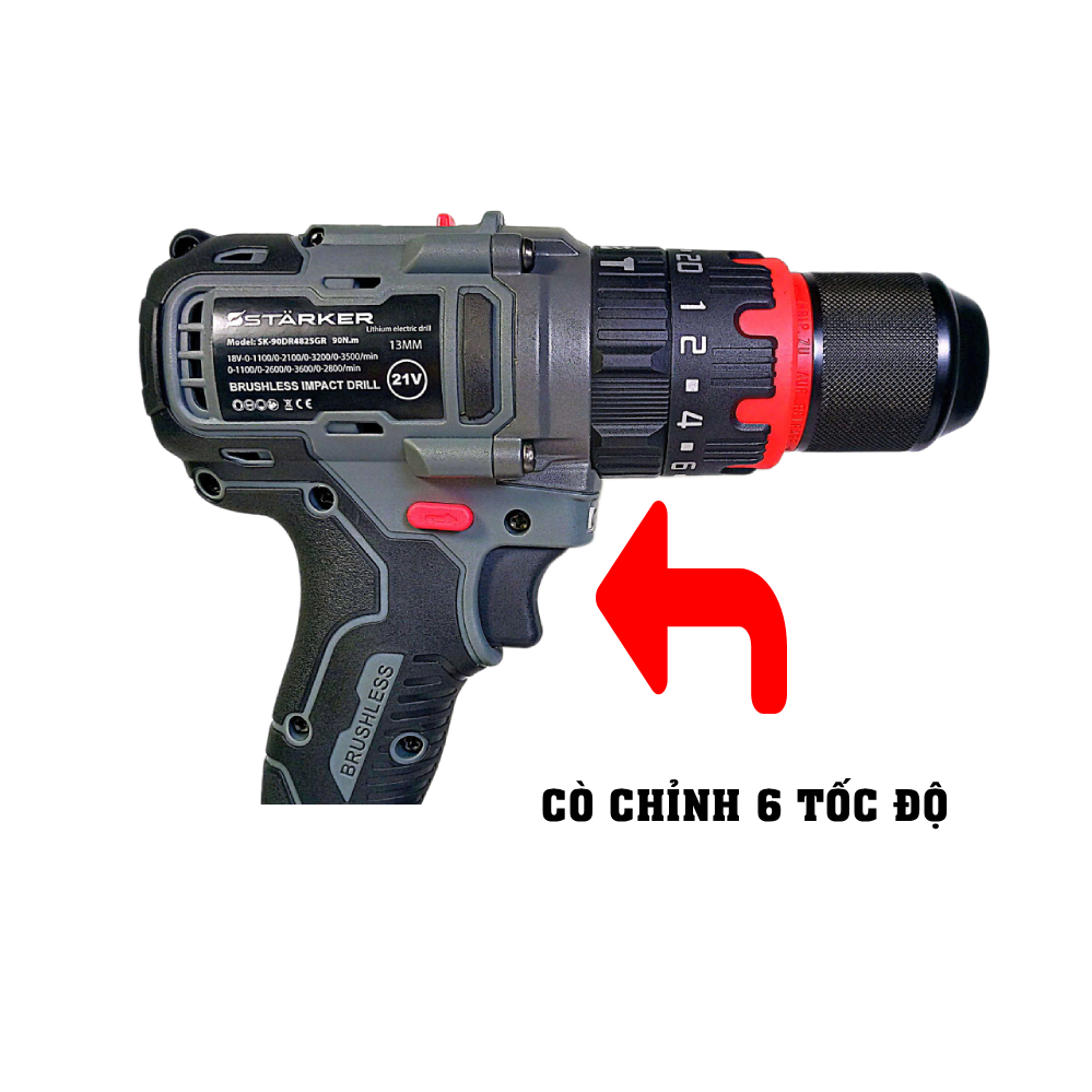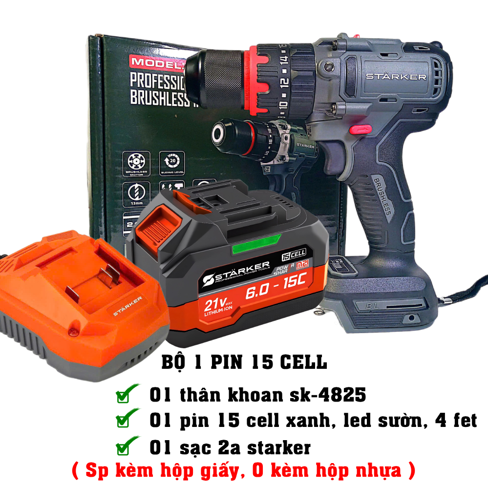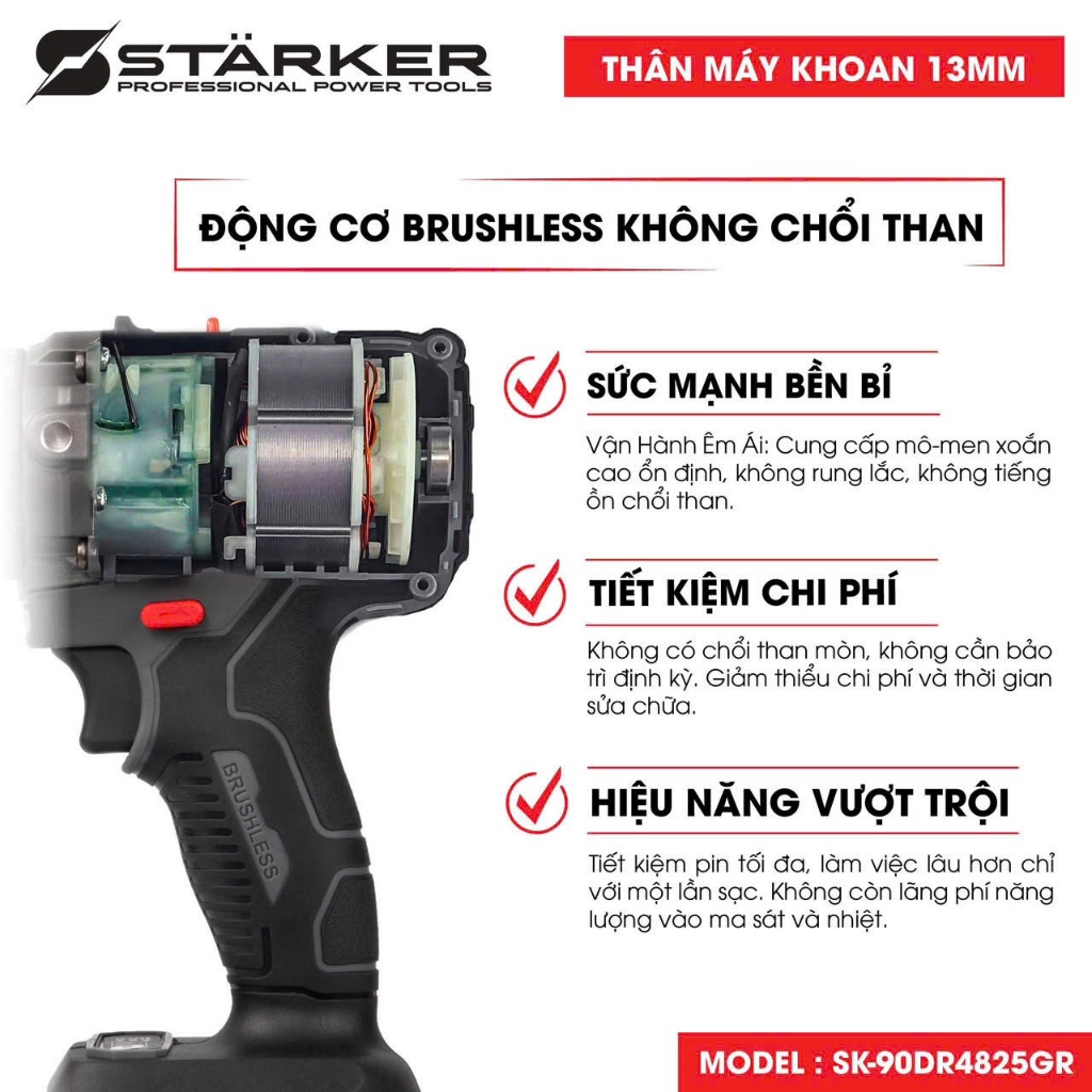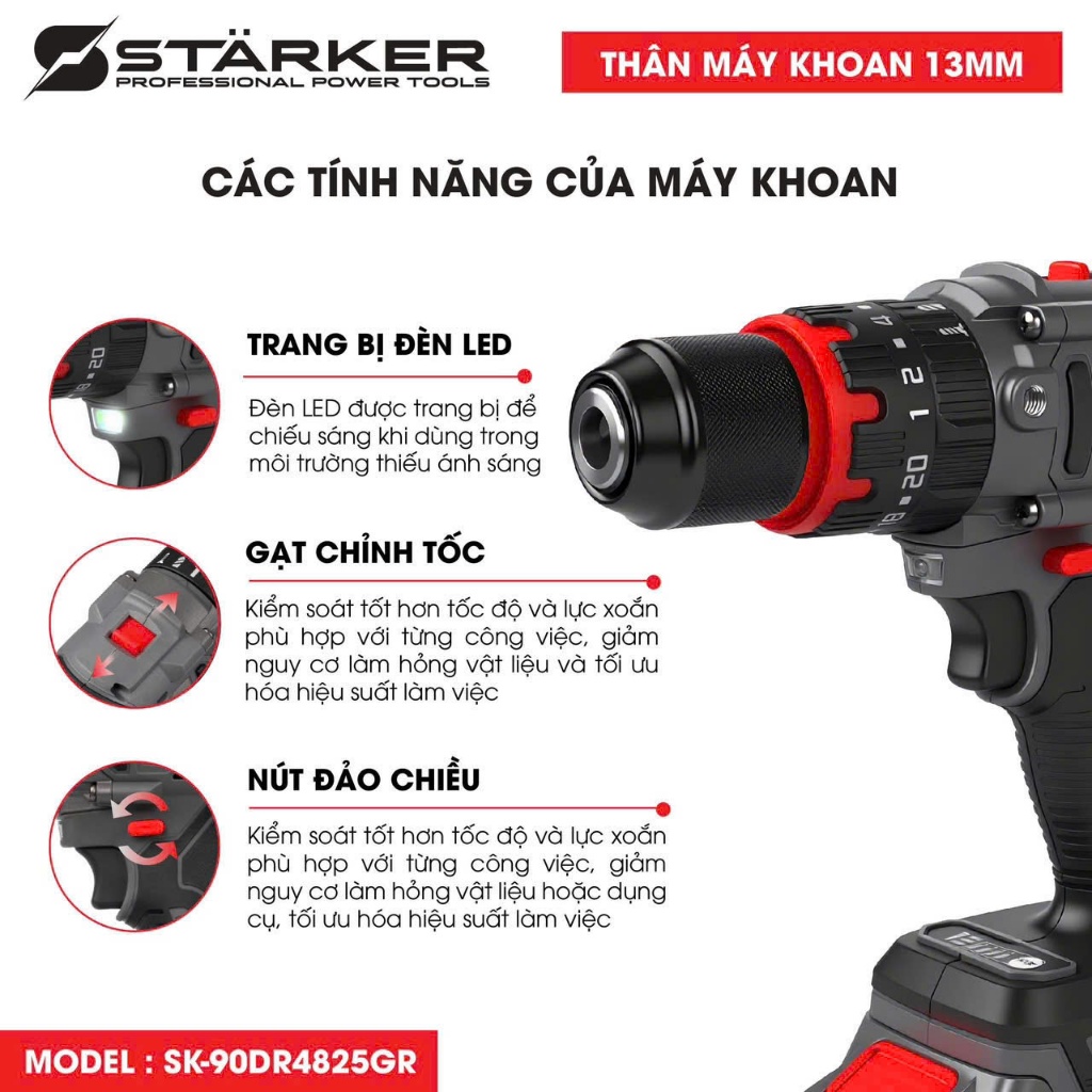 Máy khoan pin STARKER SK 4825 lực siết 90N.m đầu kẹp 13mm chân pin phổ thông m21 4 cm