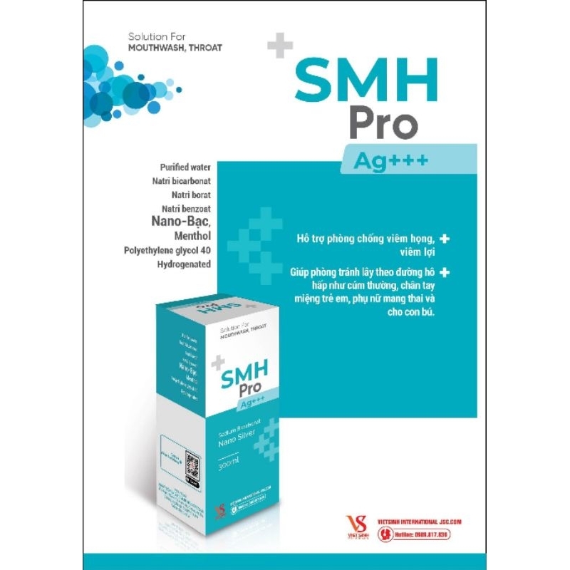Nước súc họng nano bạc SMC Ag+ 250ml kháng khuẩn, hỗ trợ viêm họng, đau rát họng, phòng ngừa viêm lợi, hôi miệng