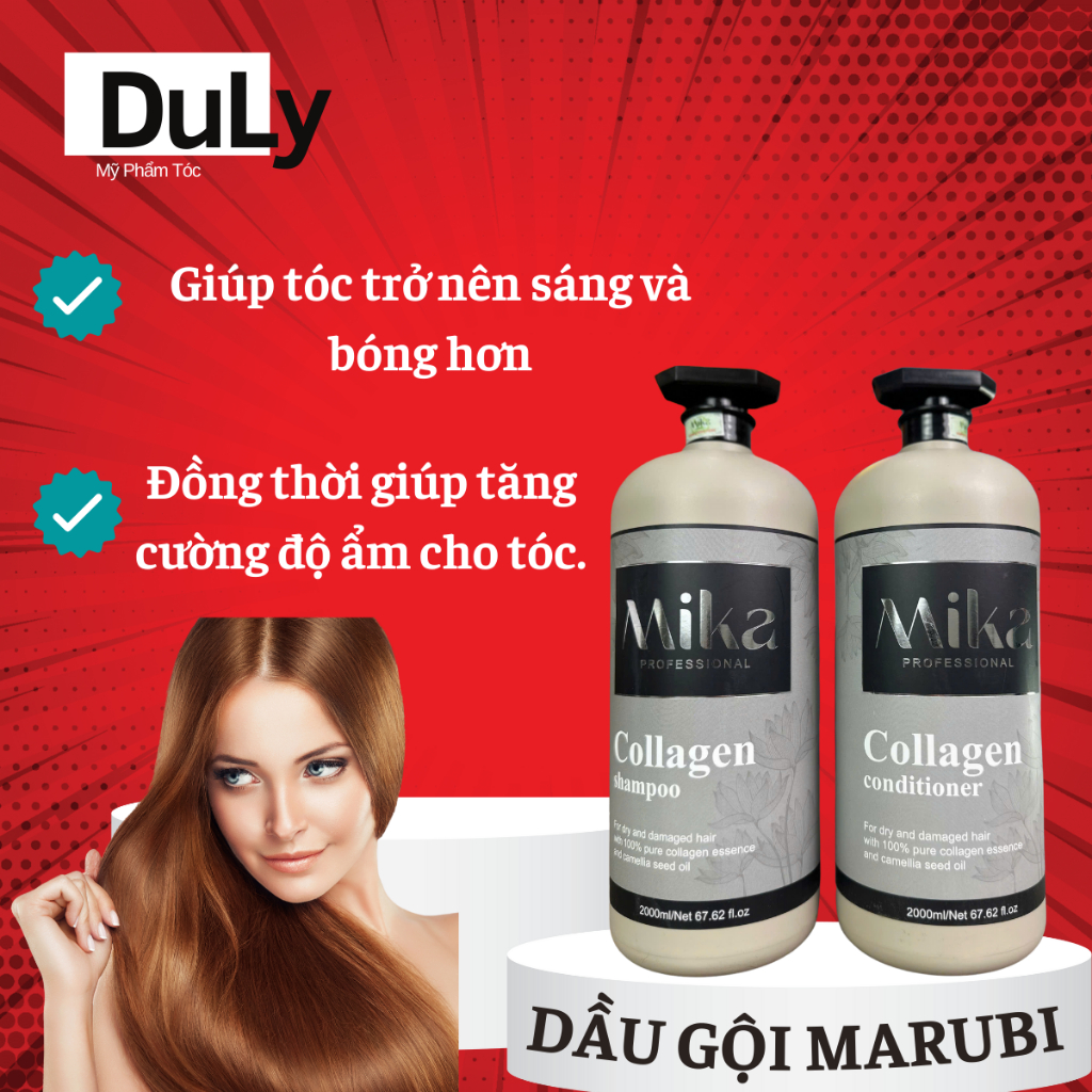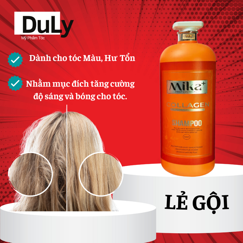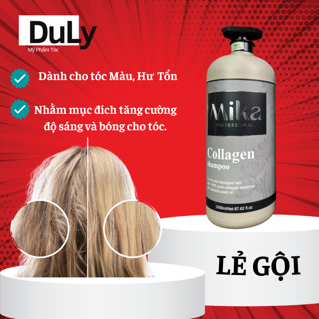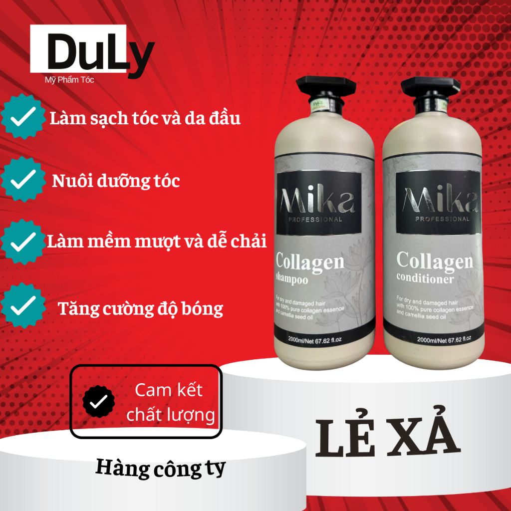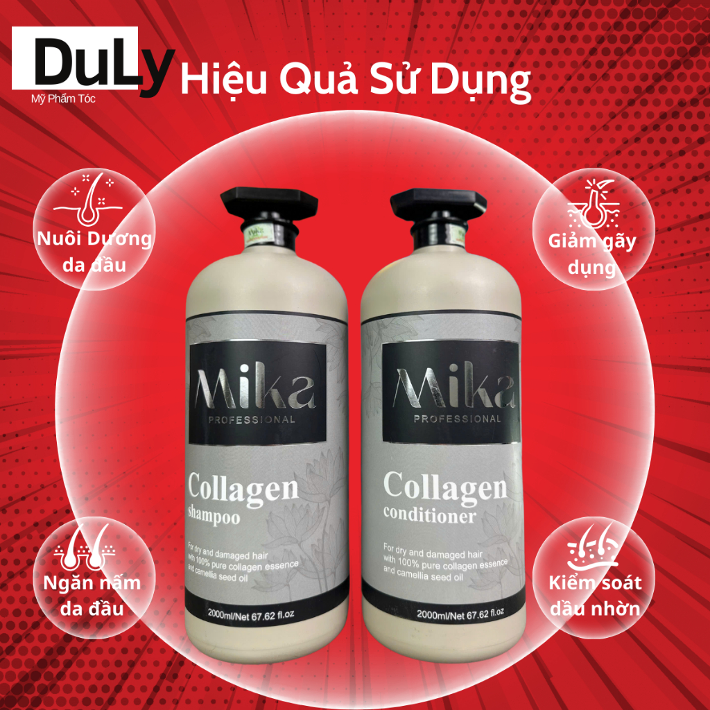 Cặp Dầu Gội Xả Collagen MIKA phục hồi hư tổn cho da đầu dầu, ngăn gàu, dầu gội collagen