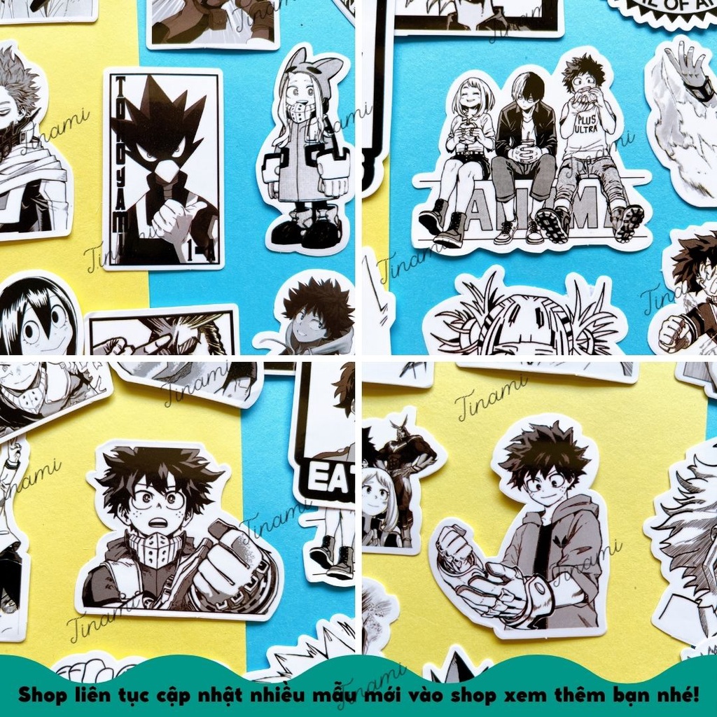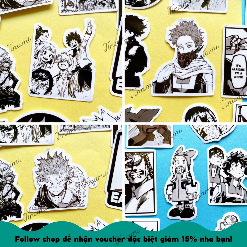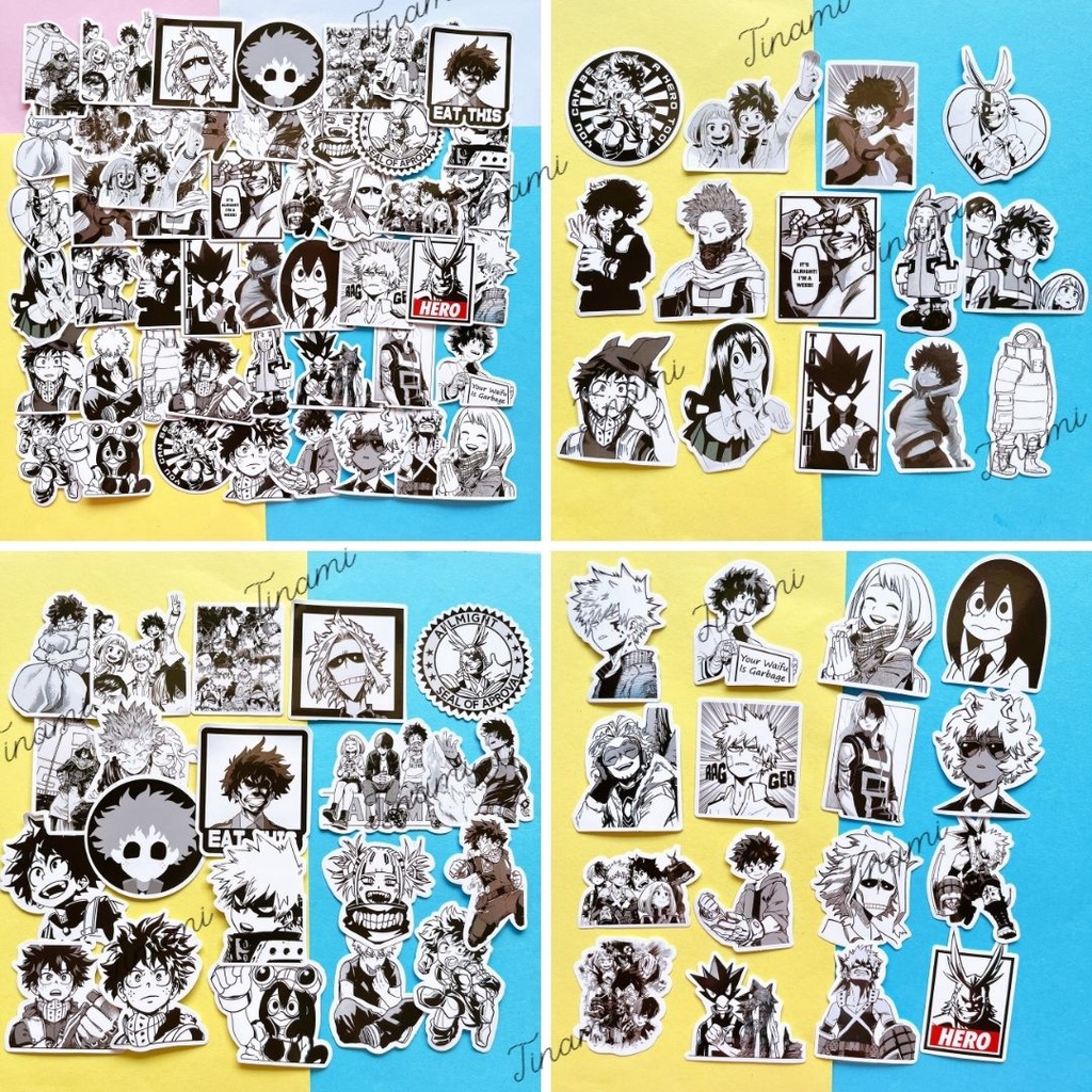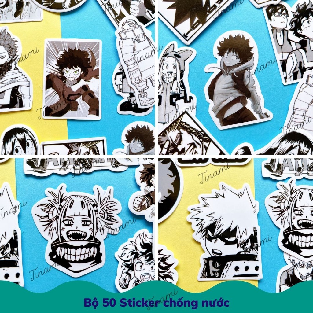 Bộ 50 sticker học viện anh hùng chống nước hình dán my hero academia phong cách trắng đen trang trí