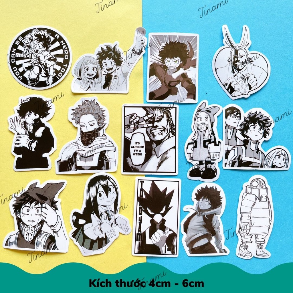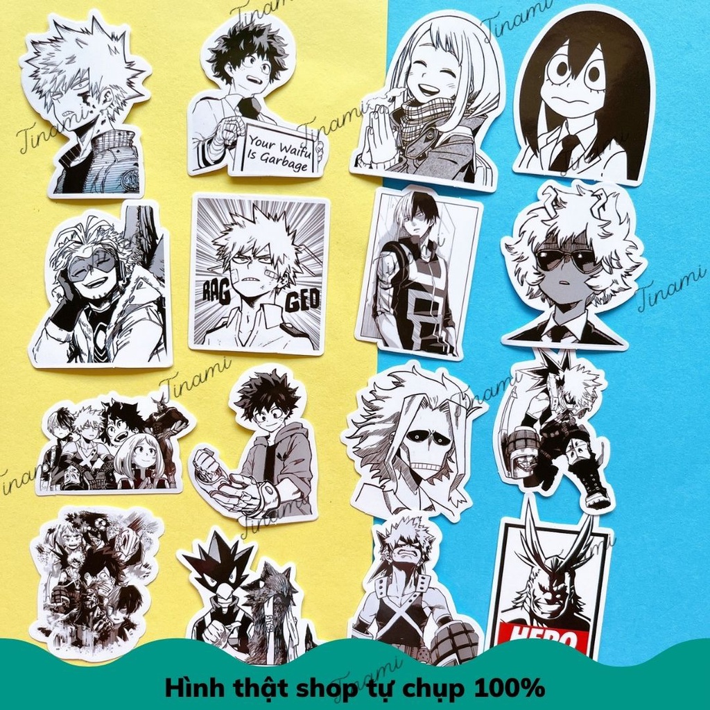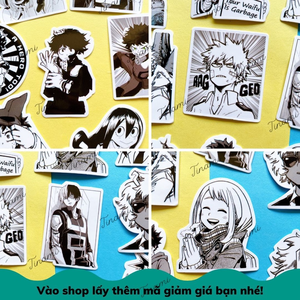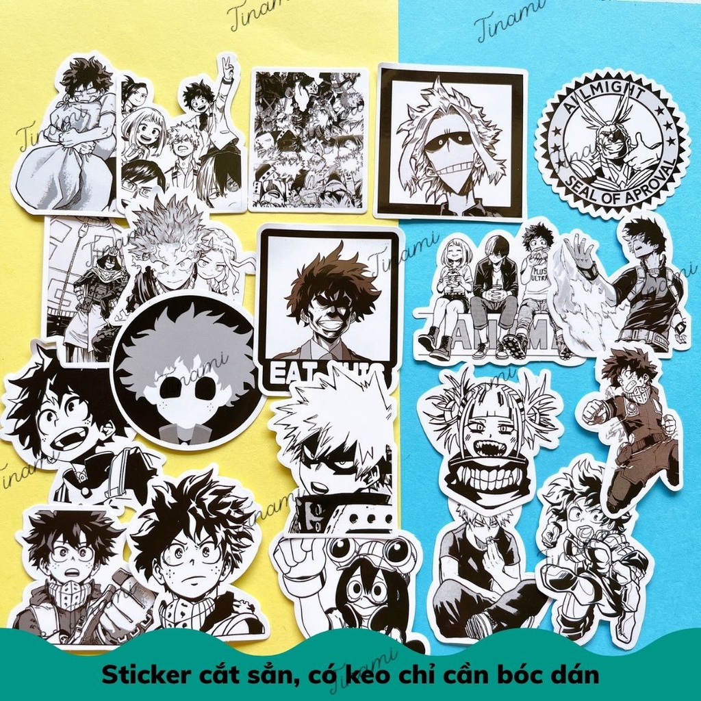 Bộ 50 sticker học viện anh hùng chống nước hình dán my hero academia phong cách trắng đen trang trí
