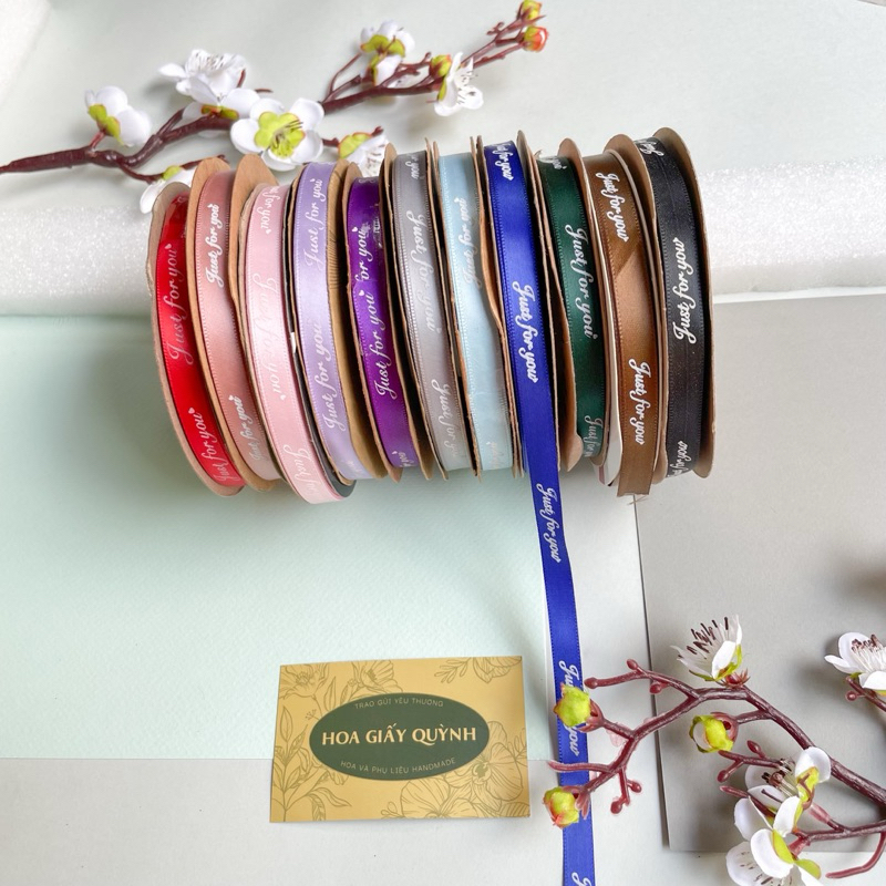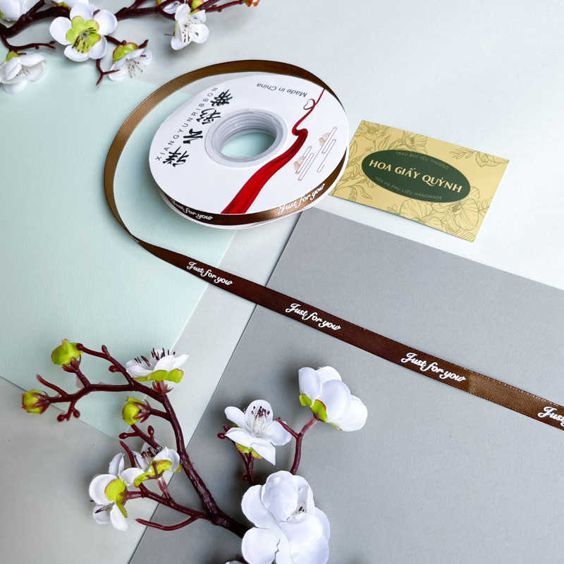 RUY BĂNG LỤA 1CM chữ Just for you