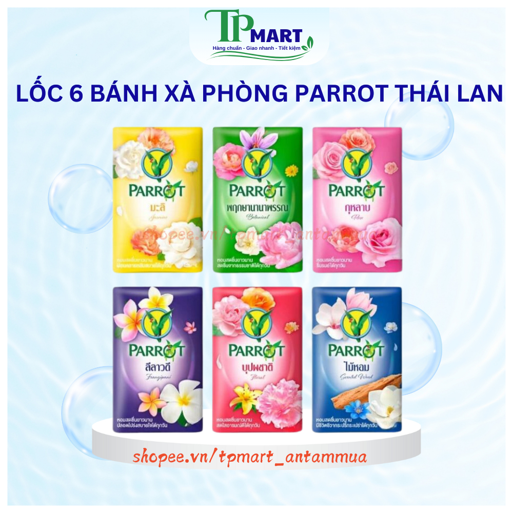 Lốc 6 bánh xà phòng Vẹt PARROT Thái Lan 55g các màu - TP Mart An Tâm Mua Hàng Chuẩn