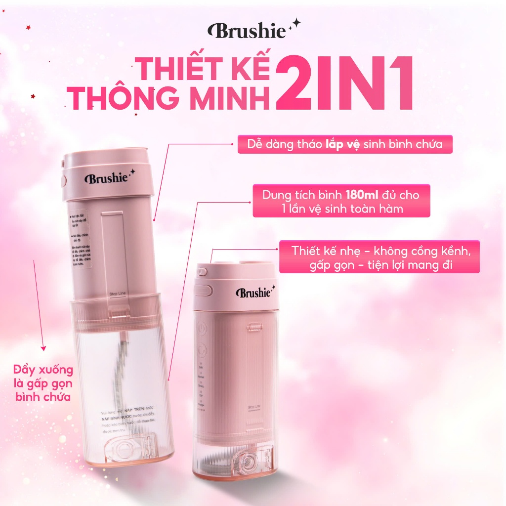 [577K LIVE NINH DƯƠNG STORY] Tăm Nước Brushie Super Clean Bản Cải Tiến 17 Chế Độ Làm Sạch Sâu Cho Răng Niềng, KOC