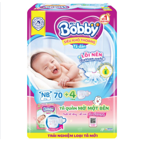Tã/bỉm DÁN BOBBY lõi nén (XS70)NB70/S80/M76/L68 Quần mở một bên NB70+6/S80 mới