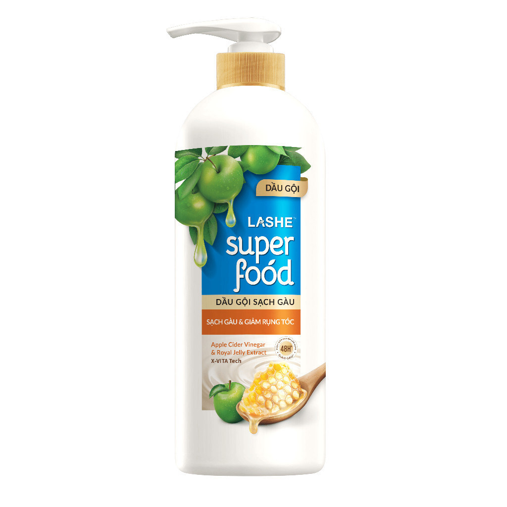 Combo 2 Dầu Gội LASHE SUPERFOOD Sạch Gàu 630Gx2 và Dầu Xả LASHE SUPERFOOD 550G
