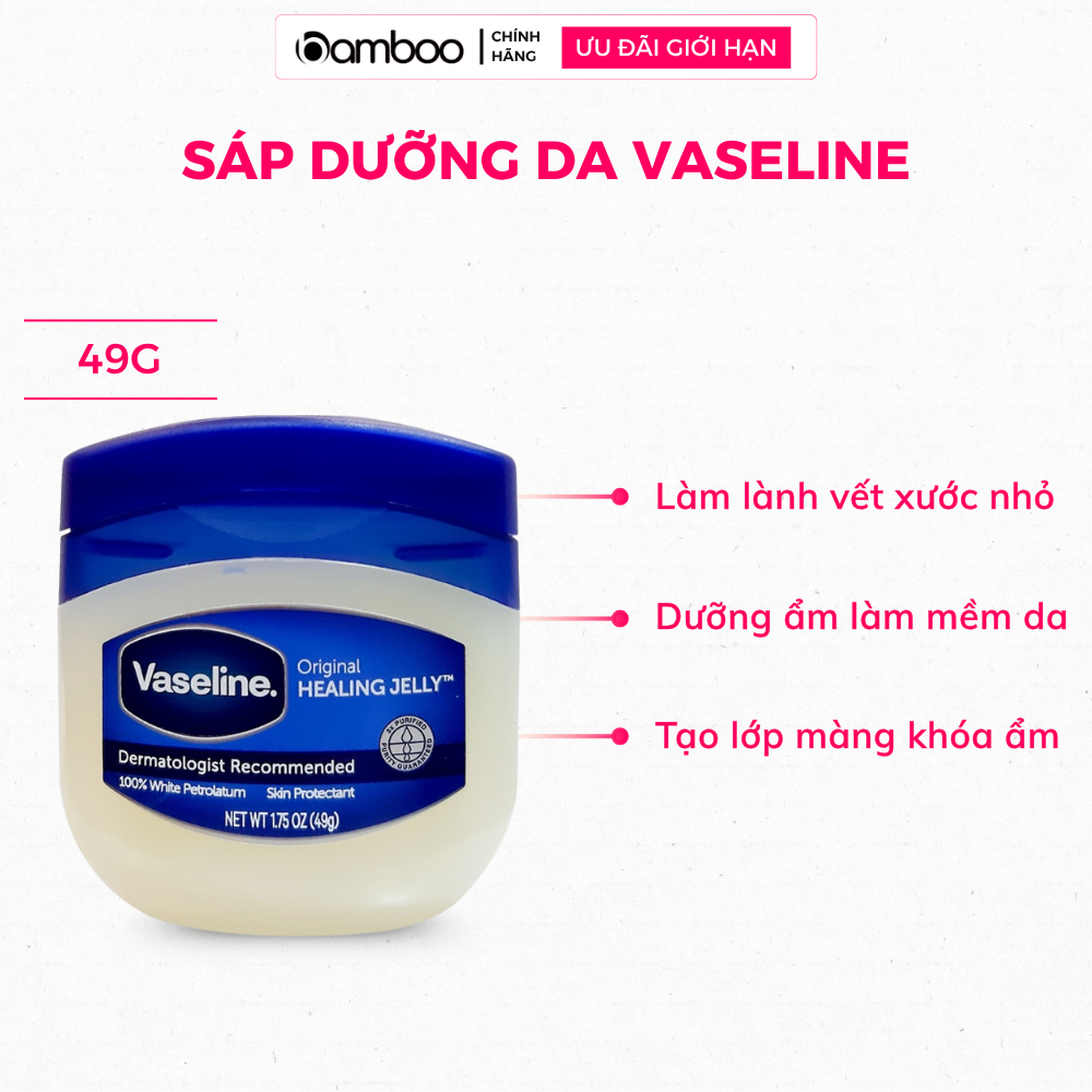 Sáp dưỡng ẩm Vaseline giữ ẩm lâu, làm dịu da, ngăn ngừa khô da, nứt nẻ làm mềm mịn da hiệu quả