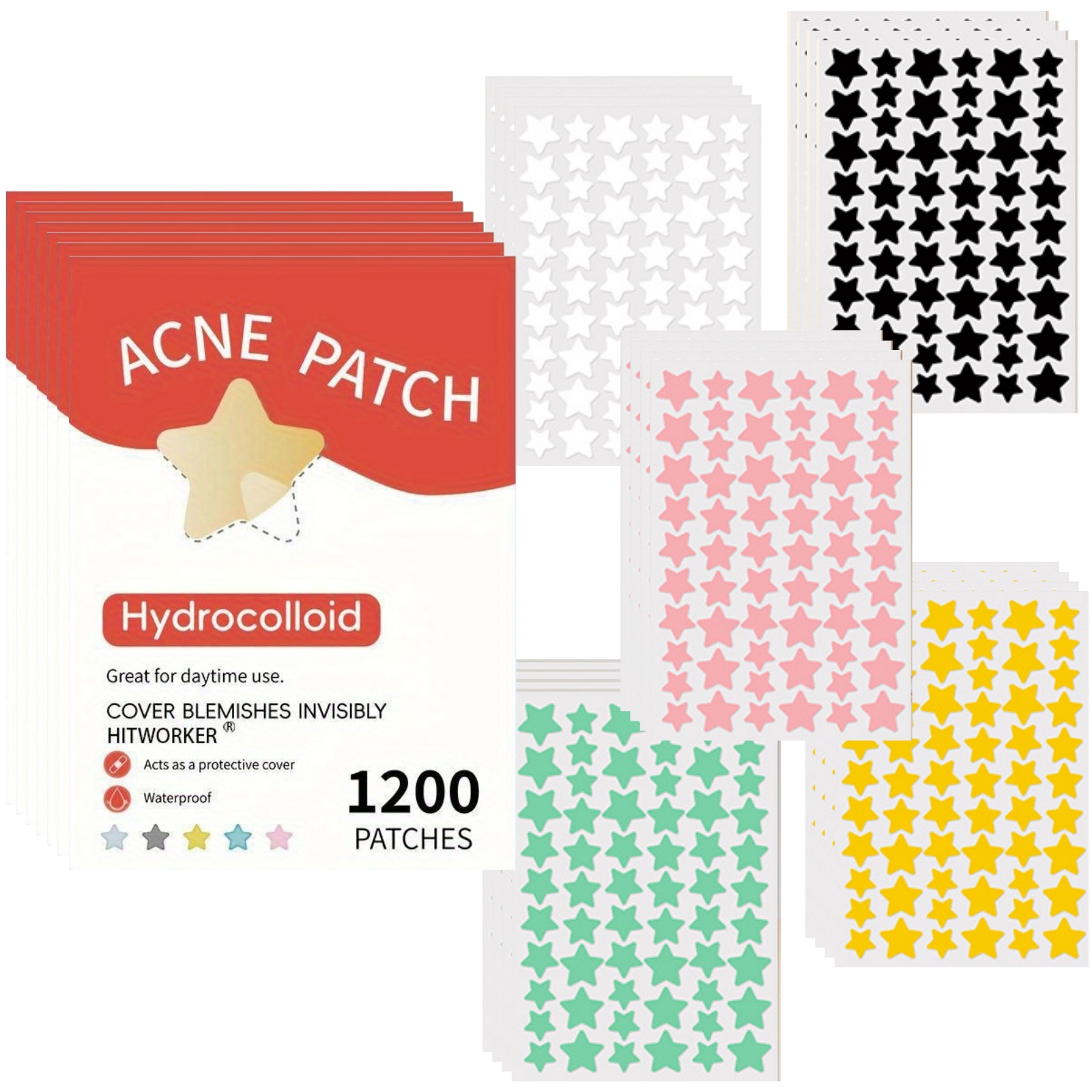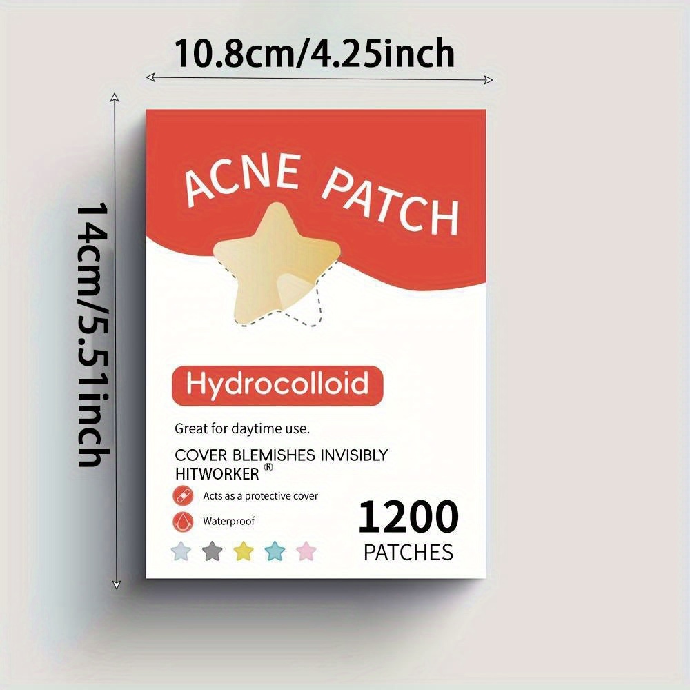 Miếng dán Hỗ trợ giảm mụn hình ngôi sao nhiều màu 1200 mảnh - Thích hợp cho mọi loại da, bao gồm vết thâm và làm sạch sâu, Hoàn hảo cho sự không hoàn hảo trên da và da