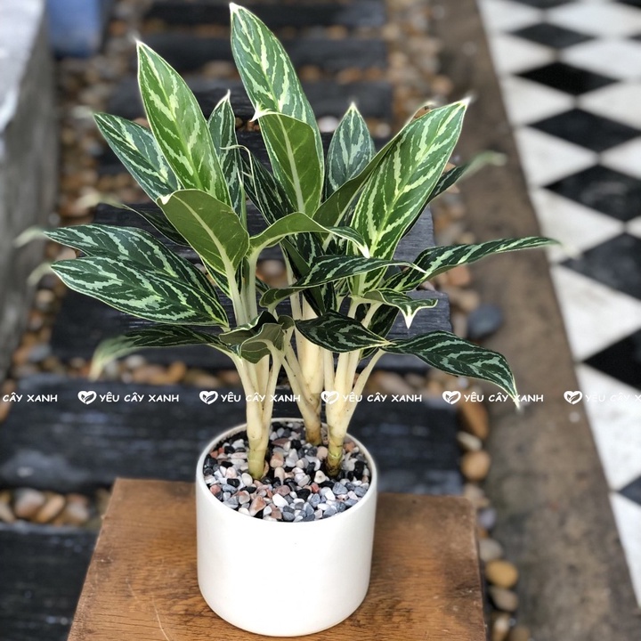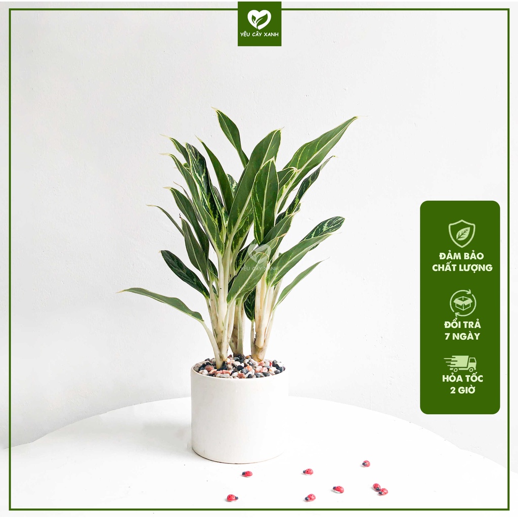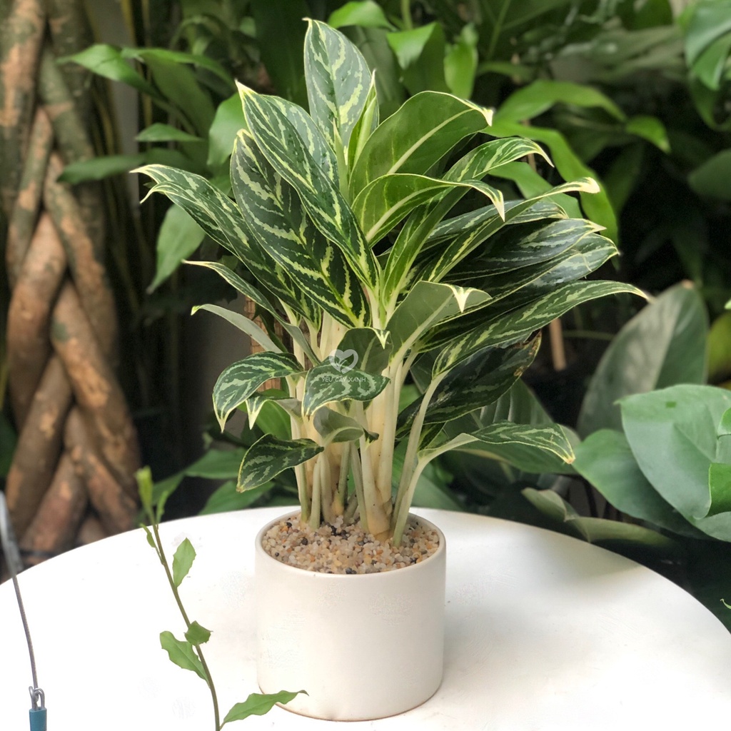 Cây Bạch Mã Hoàng Tử (Tiểu Bạch Mã) để bàn phong thủy kèm chậu sứ dễ chăm sóc