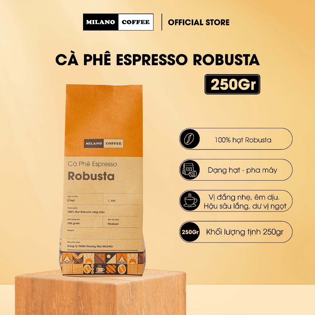 Cà phê hạt 100% ROBUSTA rang mộc nguyên chất MILANO COFFEE 250gr