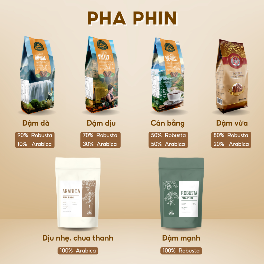 Cà phê HÂN VINH pha phin nguyên chất 80% Robusta + 20% Arabica rang mộc từ Dehavi Coffee