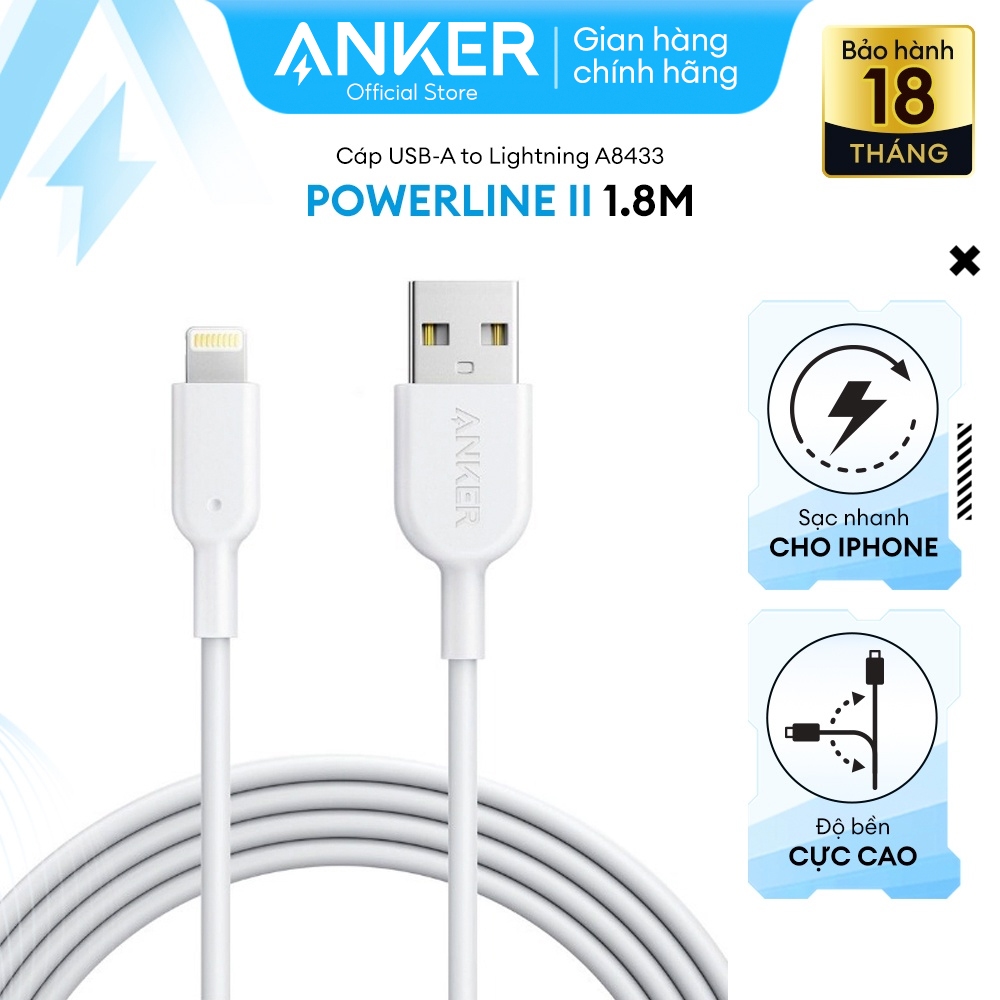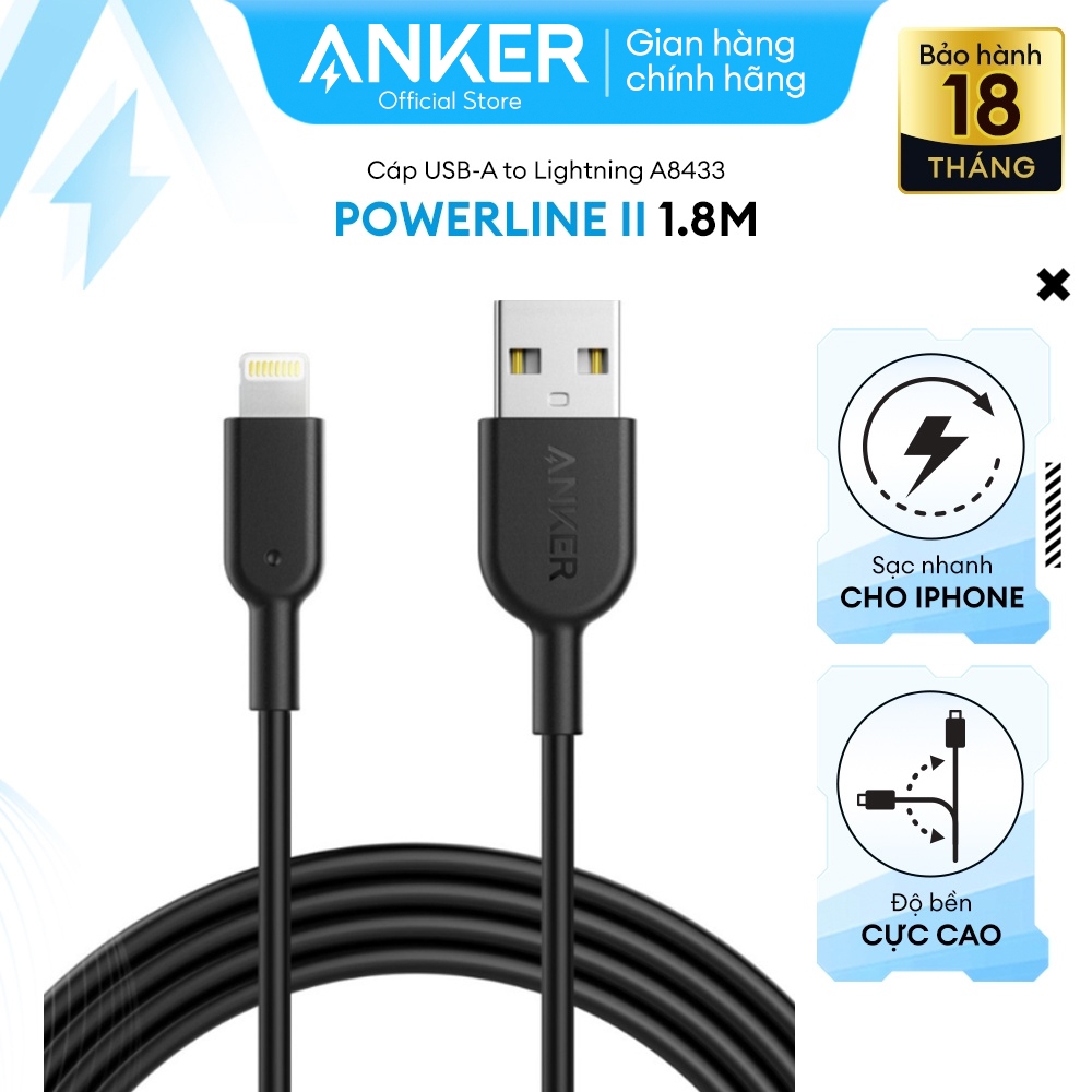 Cáp sạc ANKER Powerline II Lightning - Dài 1.8m - A8433