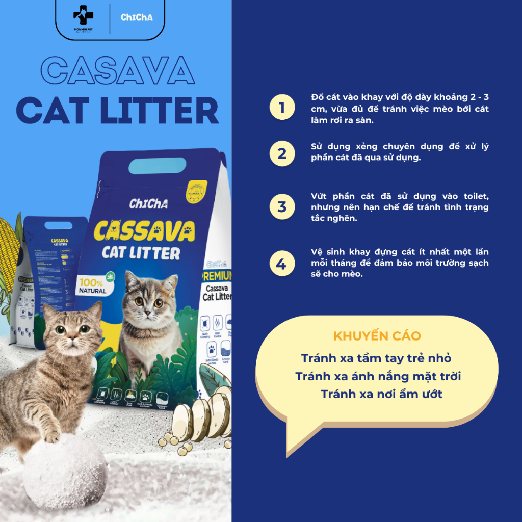 Cát vệ sinh không bụi ChiCha siêu vón cục trong 3 giây giúp khử khuẩn, khử mùi hôi cho mèo 2.5kg